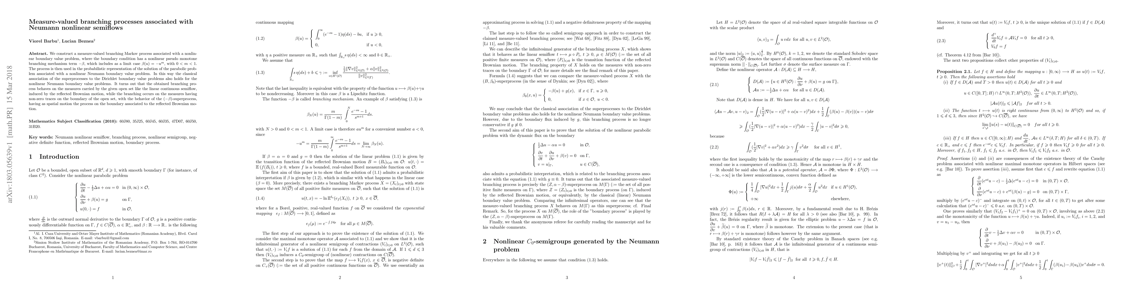 We construct a measure-valued branching Markov process associated with a nonlinear boundary value problem, where the boundary condition has a nonlinear pseudo monotone branching mechanism term $-\beta$, which includes as a limit case $\beta(u) = - u^{m}$, with $0 < m < 1$. The process is then used in the probabilistic representation of the solution of the parabolic problem associated with a nonlinear Neumann boundary value problem. In this way the classical association of the superprocesses to the Dirichlet boundary value problems also holds for the nonlinear Neumann boundary value problems. It turns out that the obtained branching process behaves on the measures carried by the given open set like the linear continuous semiflow, induced by the reflected Brownian motion, while the branching occurs on the measures having non-zero traces on the boundary of the open set, with the behavior of the $(-\beta)$-superprocess, having as spatial motion the process on the boundary associated to the reflected Brownian motion