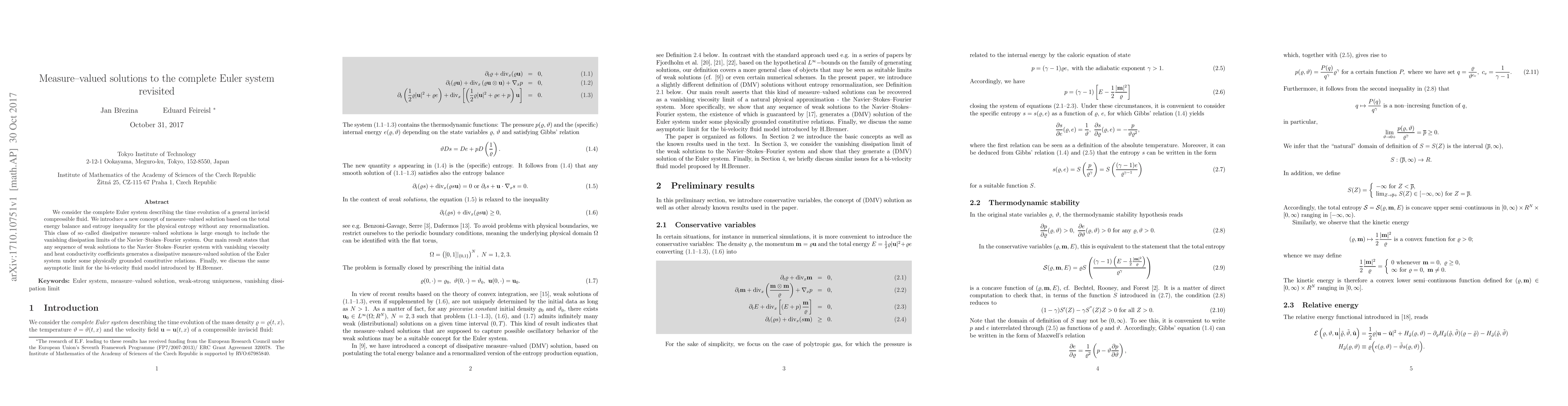 We consider the complete Euler system describing the time evolution of a general inviscid compressible fluid. We introduce a new concept of measure-valued solution based on the total energy balance and entropy inequality for the physical entropy without any renormalization. This class of so-called dissipative measure-valued solutions is large enough to include the vanishing dissipation limits of the Navier-Stokes-Fourier system. Our main result states that any sequence of weak solutions to the Navier-Stokes-Fourier system with vanishing viscosity and heat conductivity coefficients generates a dissipative measure-valued solution of the Euler system under some physically grounded constitutive relations. Finally, we discuss the same asymptotic limit for the bi-velocity fluid model introduced by H.Brenner.
