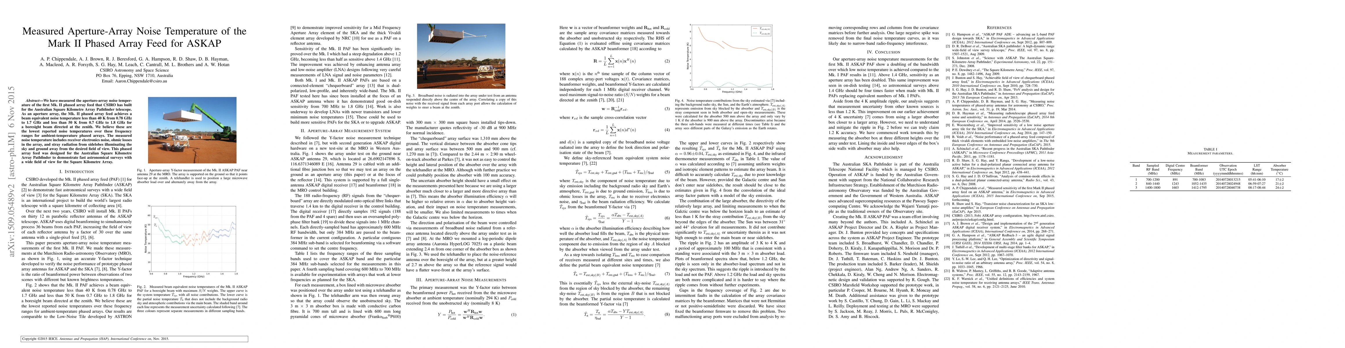 We have measured the aperture-array noise temperature of the first Mk. II phased array feed that CSIRO has built for the Australian Square Kilometre Array Pathfinder telescope. As an aperture array, the Mk. II phased array feed achieves a beam equivalent noise temperature less than 40 K from 0.78 GHz to 1.7 GHz and less than 50 K from 0.7 GHz to 1.8 GHz for a boresight beam directed at the zenith. We believe these are the lowest reported noise temperatures over these frequency ranges for ambient-temperature phased arrays. The measured noise temperature includes receiver electronics noise, ohmic losses in the array, and stray radiation from sidelobes illuminating the sky and ground away from the desired field of view. This phased array feed was designed for the Australian Square Kilometre Array Pathfinder to demonstrate fast astronomical surveys with a wide field of view for the Square Kilometre Array.