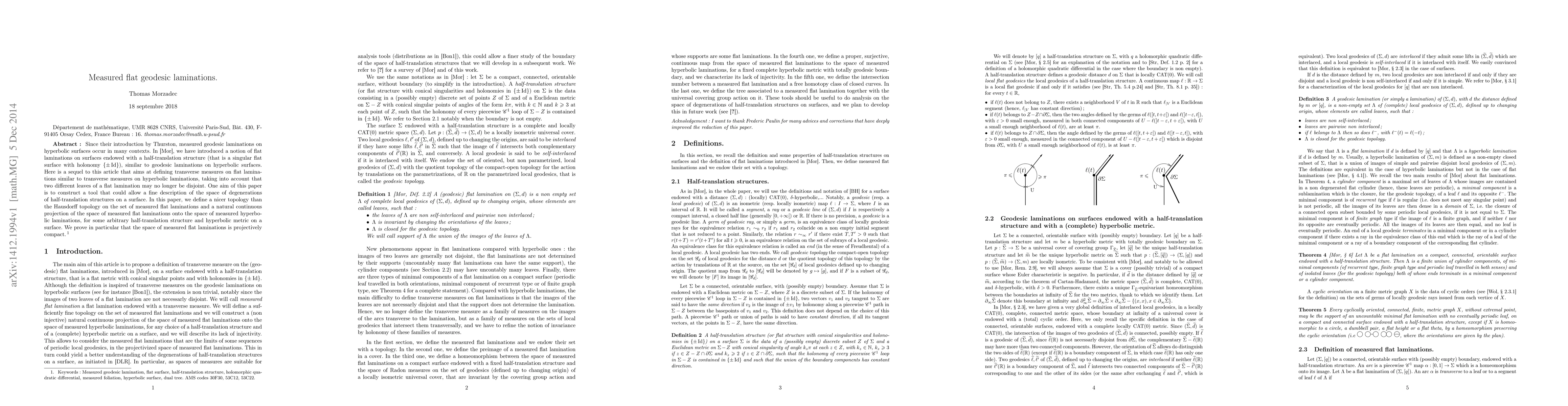 This paper extends the concept of flat laminations on surfaces with half-translation structures by defining transverse measures on them. It introduces a refined topology on the space of measured flat laminations and proves their projective compactness, alongside a continuous projection onto the space of measured hyperbolic laminations.