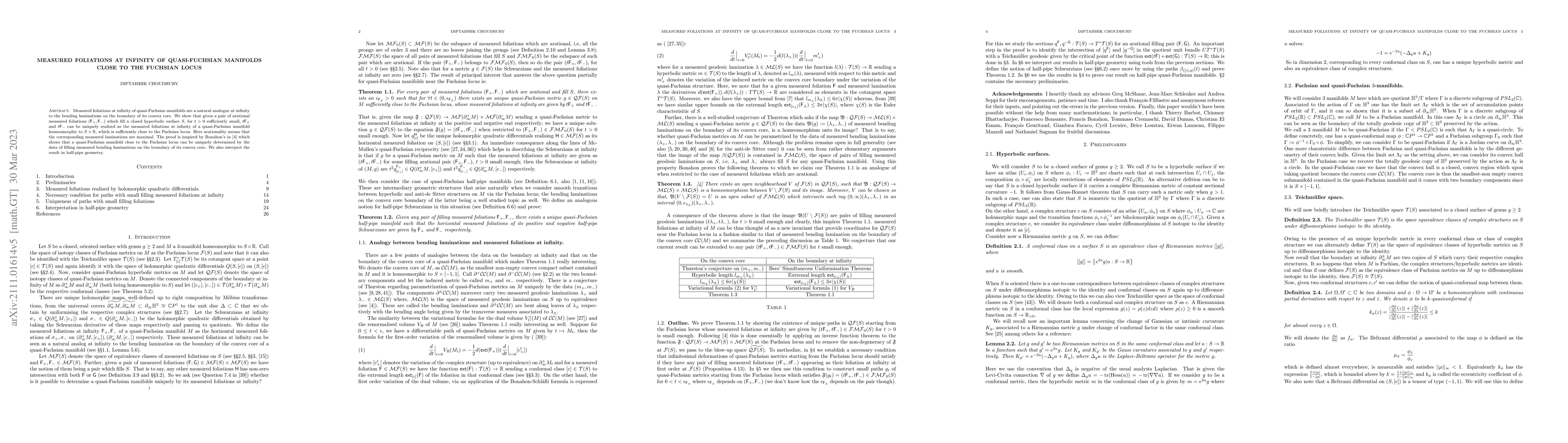 This paper investigates quasi-Fuchsian manifolds close to the Fuchsian locus and demonstrates that arational measured foliations at infinity can uniquely determine such manifolds. The result is inspired by Bonahon's work on filling measured bending laminations, and it is interpreted within half-pipe geometry.