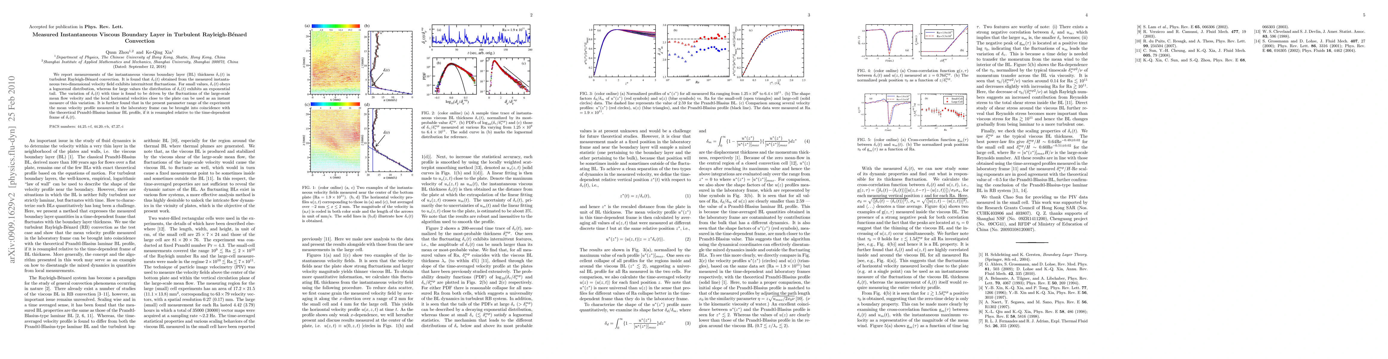 This study measures the instantaneous viscous boundary layer thickness in turbulent Rayleigh-Bénard convection, revealing intermittent fluctuations and a lognormal distribution for small values, while large values exhibit an exponential tail. The variation in boundary layer thickness is driven by fluctuations in the large-scale mean flow velocity.