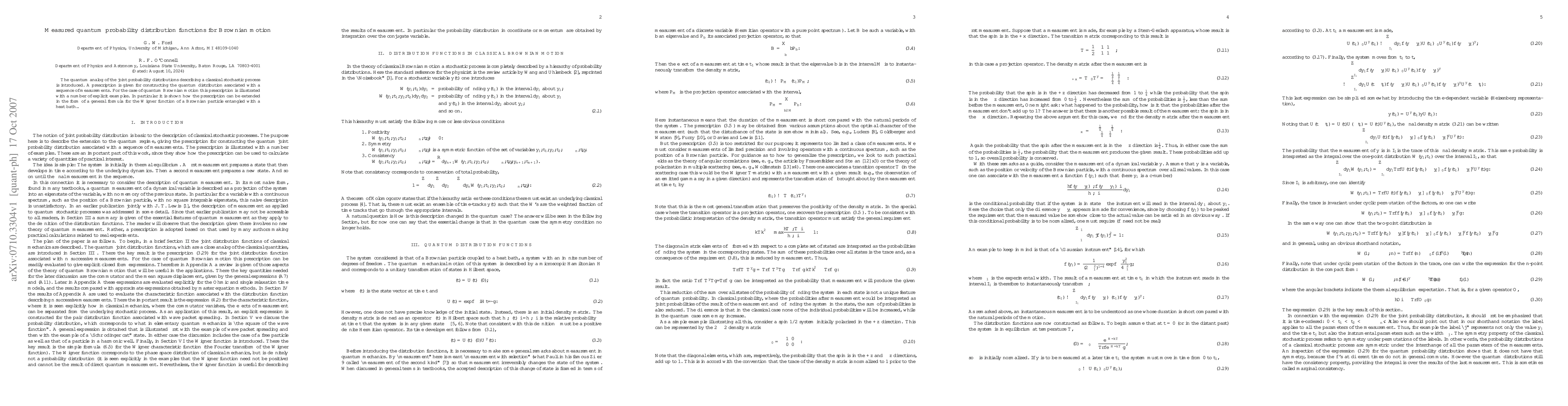 The quantum analog of the joint probability distributions describing a classical stochastic process is introduced. A prescription is given for constructing the quantum distribution associated with a sequence of measurements. For the case of quantum Brownian motion this prescription is illustrated with a number of explicit examples. In particular it is shown how the prescription can be extended in the form of a general formula for the Wigner function of a Brownian particle entangled with a heat bath.
