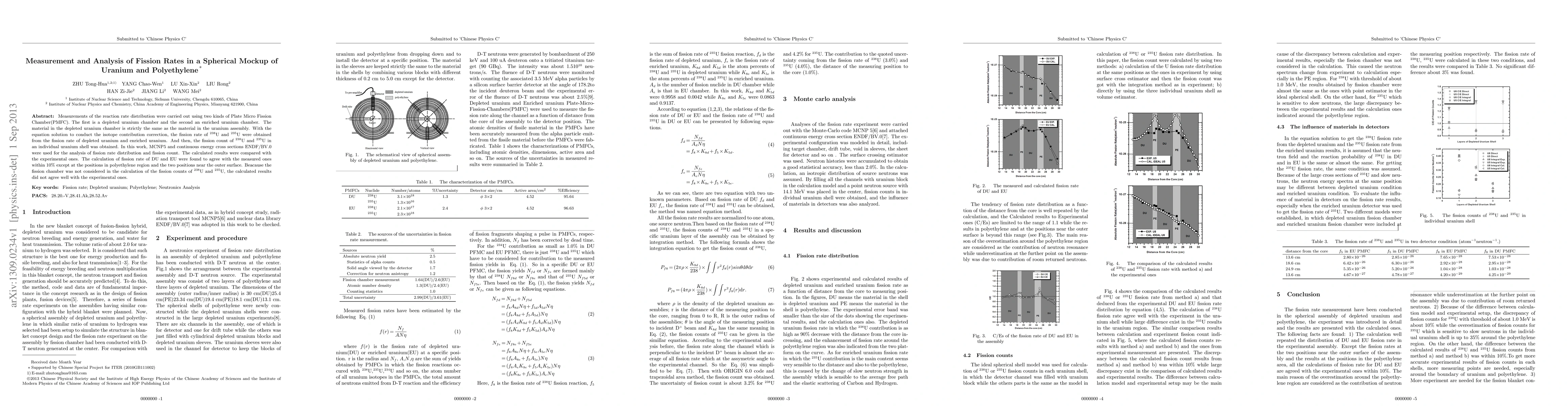 This study measures fission rates in a spherical mockup of uranium and polyethylene using two types of Plate Micro Fission Chambers, comparing calculated results with experimental data. The fission rates of 238U and 235U were determined with isotope correction, showing agreement within 10% except for specific regions.