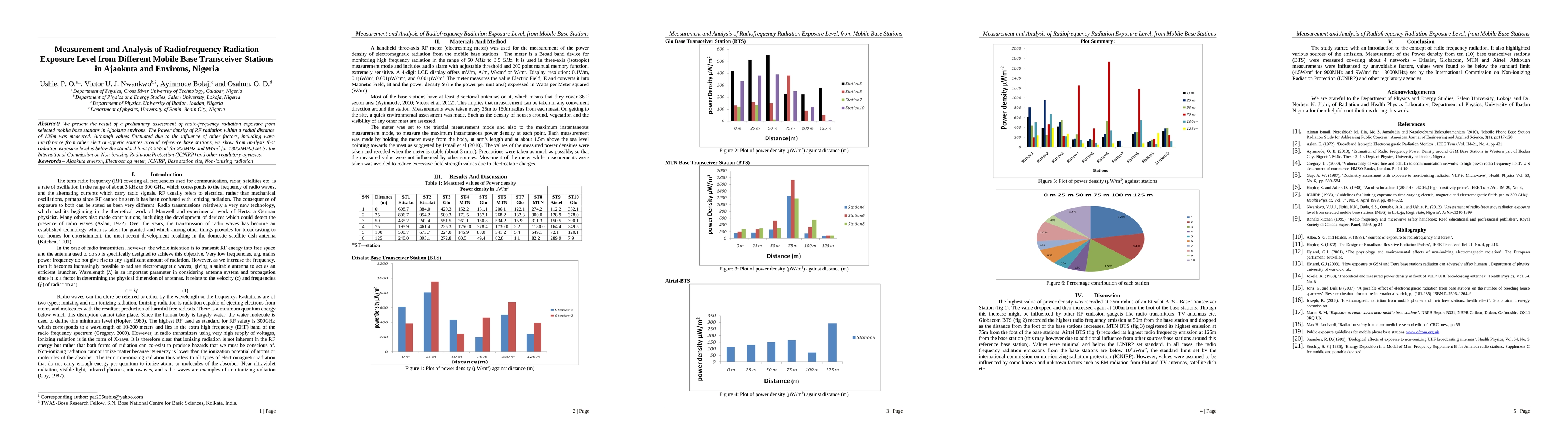 We present the result of a preliminary assessment of radio-frequency radiation exposure from selected mobile base stations in Ajaokuta environs. The Power density of RF radiation within a radial distance of 125m was measured. Although values fluctuated due to the influence of other factors, including wave interference from other electromagnetic sources around reference base stations, we show from analysis that radiation exposure level is below the standard limit (4.5W/sqm for 900MHz and 9W/sqm for 18000MHz) set by the International Commission on Non-ionizing Radiation Protection (ICNIRP) and other regulatory agencies.
