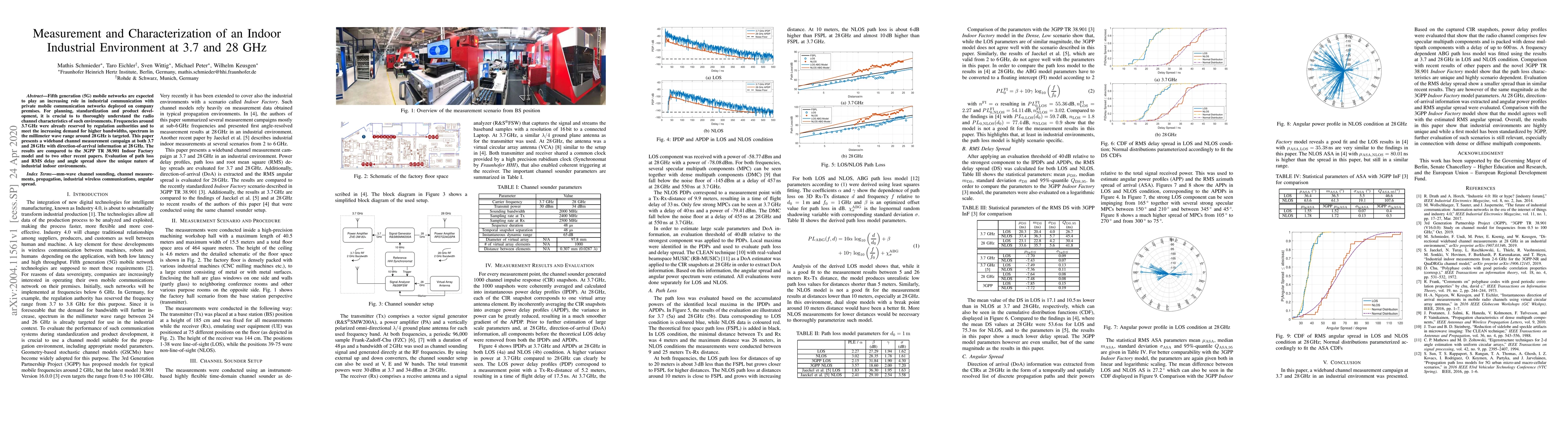 This paper conducts a comprehensive measurement campaign at 3.7 and 28 GHz to characterize radio channels in industrial environments, comparing results to the 3GPP TR 38.901 model and other studies, highlighting unique path loss and RMS delay/angle spread characteristics.