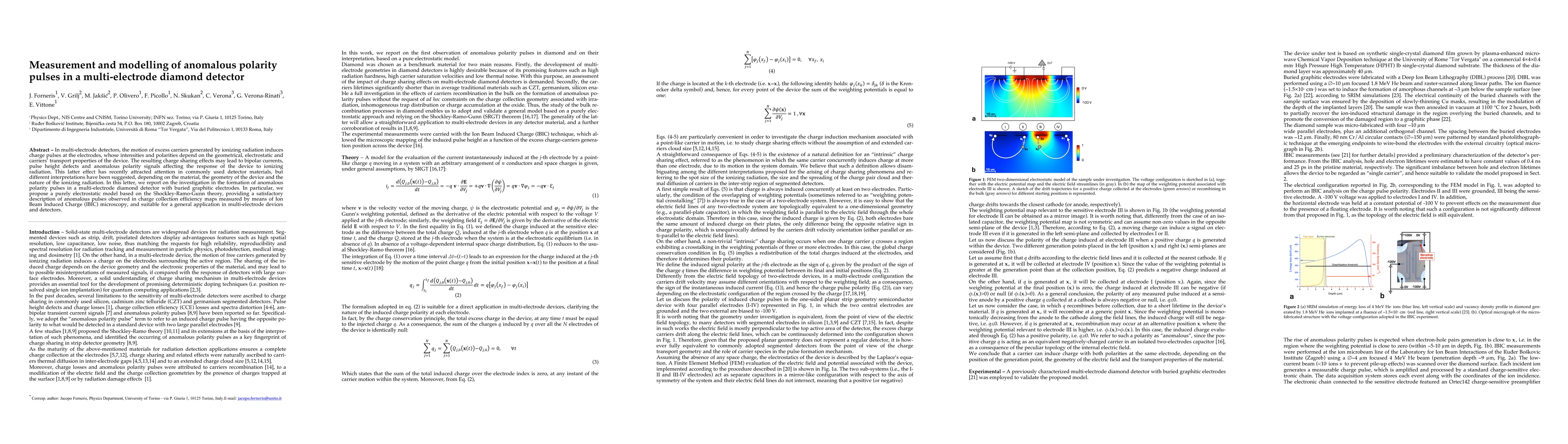 This paper investigates the formation of anomalous polarity pulses in multi-electrode diamond detectors using buried graphitic electrodes, proposing a purely electrostatic model based on the Shockley-Ramo-Gunn theory to explain these effects, validated through Ion Beam Induced Charge microscopy.