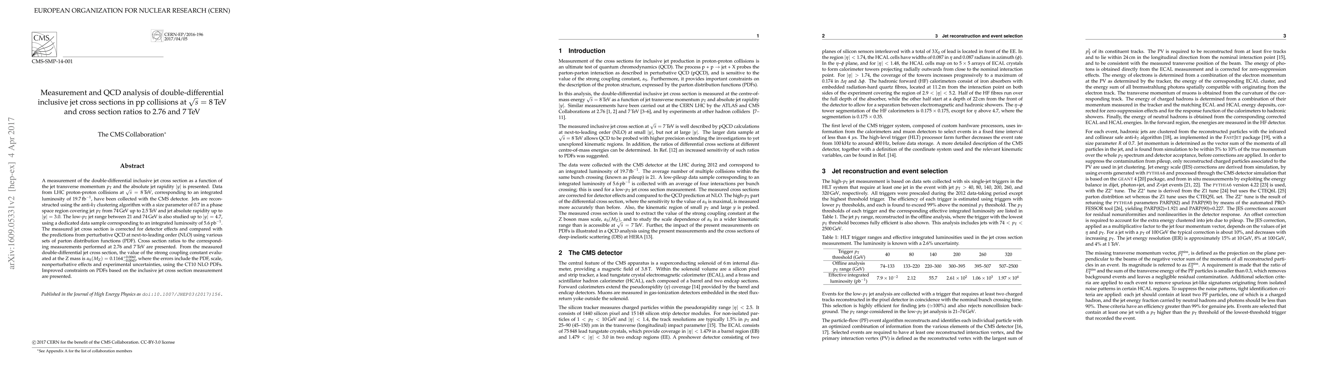 This paper reports a measurement of double-differential inclusive jet cross sections in proton-proton collisions at sqrt(s) = 8 TeV using the CMS detector, comparing results with perturbative QCD predictions and ratios to lower energy collisions at 2.76 and 7 TeV, leading to an improved determination of the strong coupling constant alpha_S(M_Z).