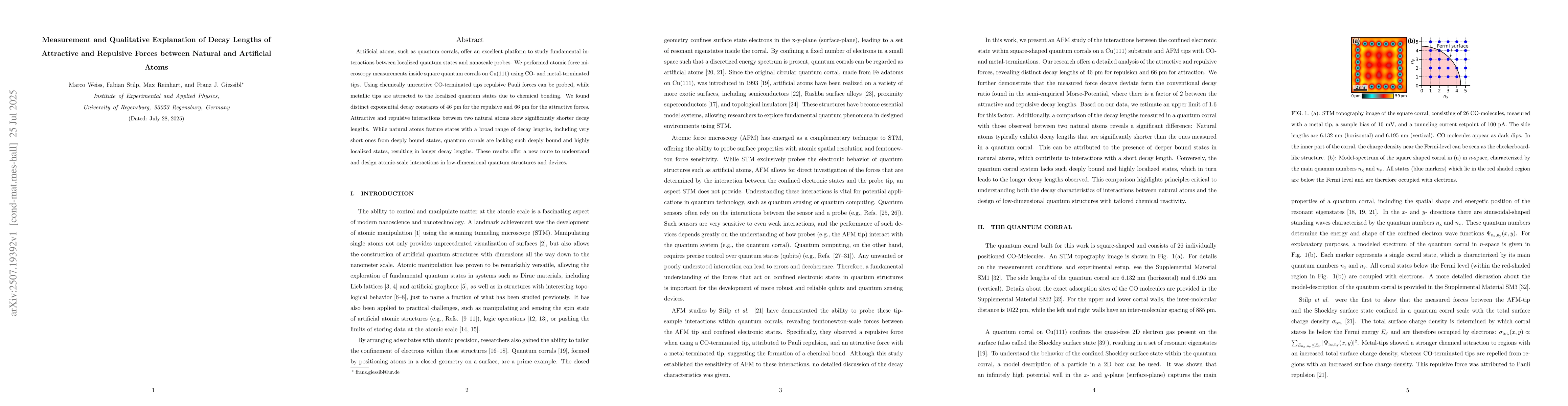 The paper presents a detailed measurement and qualitative explanation of decay lengths of both attractive and repulsive forces between natural and artificial atoms using AFM.