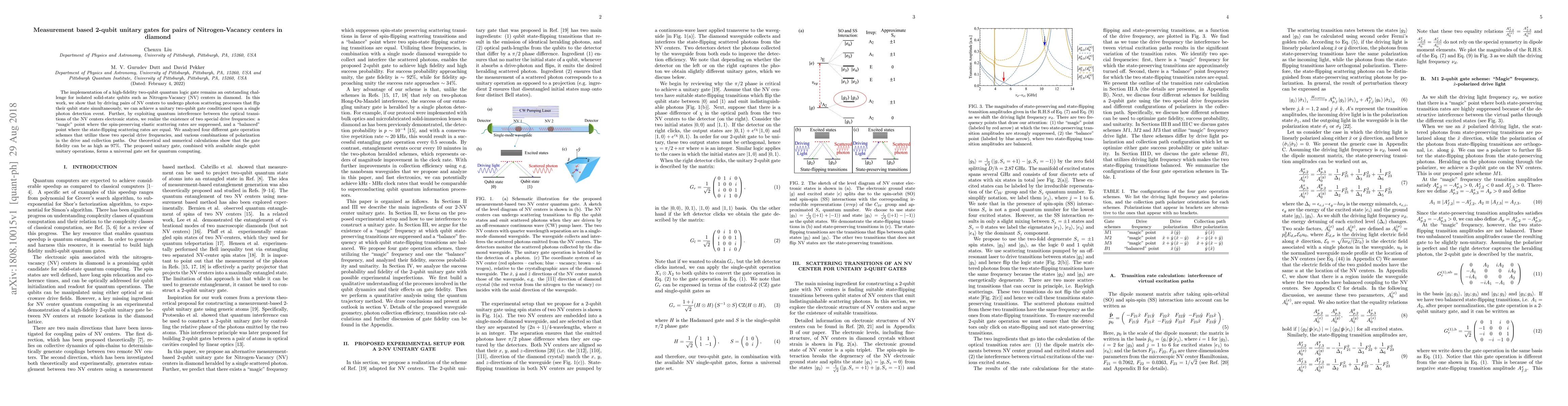 This paper presents a method for implementing high-fidelity two-qubit quantum logic gates using pairs of Nitrogen-Vacancy centers in diamond, achieving gate fidelity up to 97% by leveraging photon scattering processes and quantum interference. The technique utilizes special drive frequencies and polarization strategies to form a universal gate set for quantum computing.