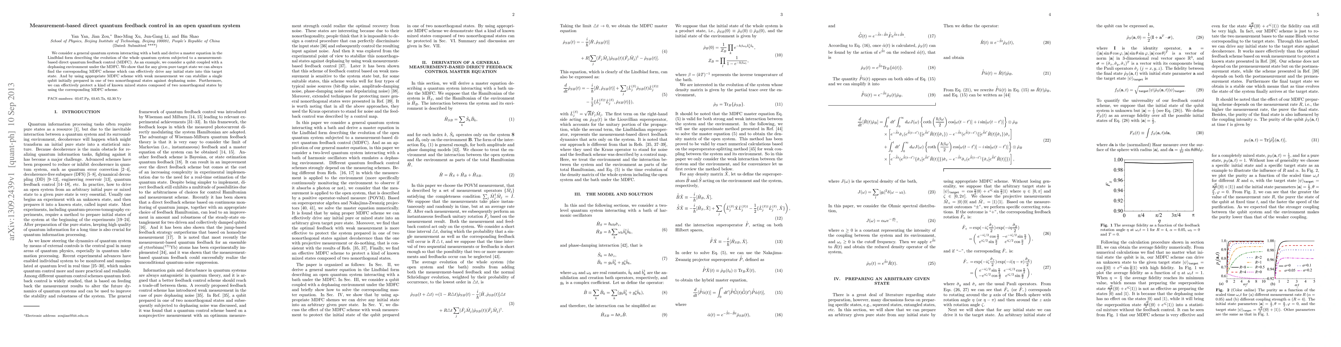 This research introduces Measurement-based Direct Quantum Feedback Control (MDFC) for stabilizing quantum states in open systems. It demonstrates that MDFC can drive any initial state to a pure target state and stabilize nonorthogonal qubit states against dephasing noise. Additionally, it shows MDFC can protect mixed states composed of nonorthogonal states.