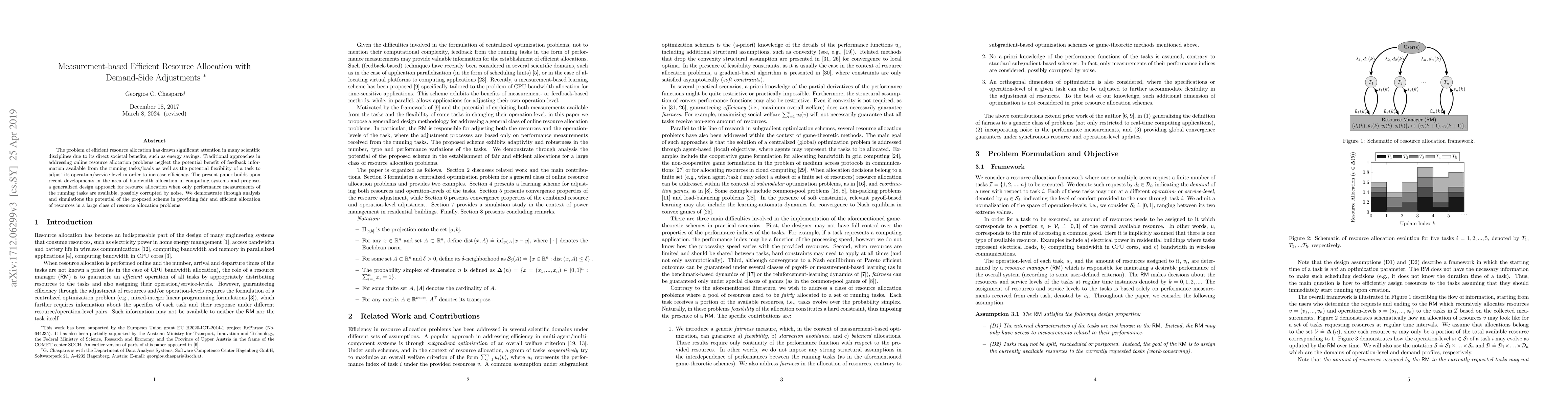 The problem of efficient resource allocation has drawn significant attention in many scientific disciplines due to its direct societal benefits, such as energy savings. Traditional approaches in addressing online resource allocation problems neglect the potential benefit of feedback information available from the running tasks/loads as well as the potential flexibility of a task to adjust its operation/service-level in order to increase efficiency. The present paper builds upon recent developments in the area of bandwidth allocation in computing systems and proposes a generalized design approach for resource allocation when only performance measurements of the running tasks are available, possibly corrupted by noise. We demonstrate through analysis and simulations the potential of the proposed scheme in providing fair and efficient allocation of resources in a large class of resource allocation problems.