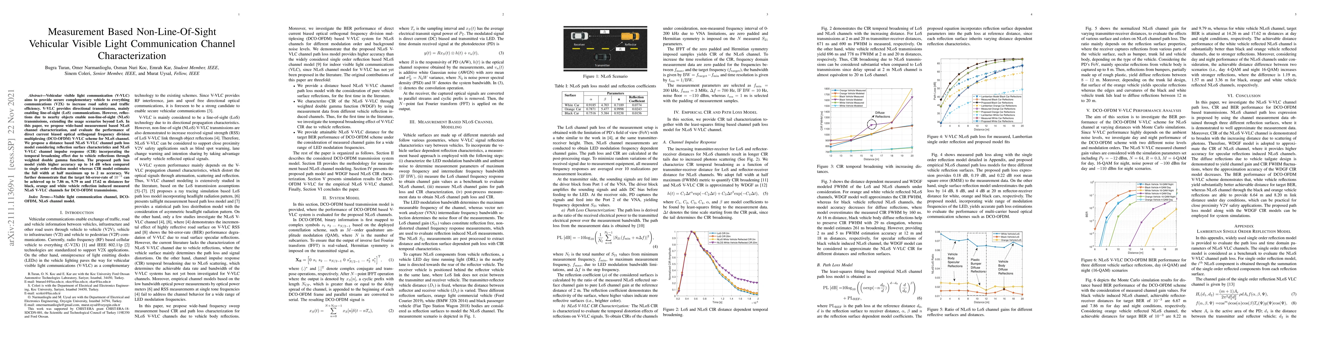 This paper characterizes non-line-of-sight (NLoS) vehicular visible light communication (V-VLC) channels through measurement-based methods, proposing a distance-based path loss model and a channel impulse response model. The study demonstrates improved accuracy and successful bit-error-rate performance for direct current biased optical orthogonal frequency division multiplexing (DCO-OFDM) transmissions over various distances.