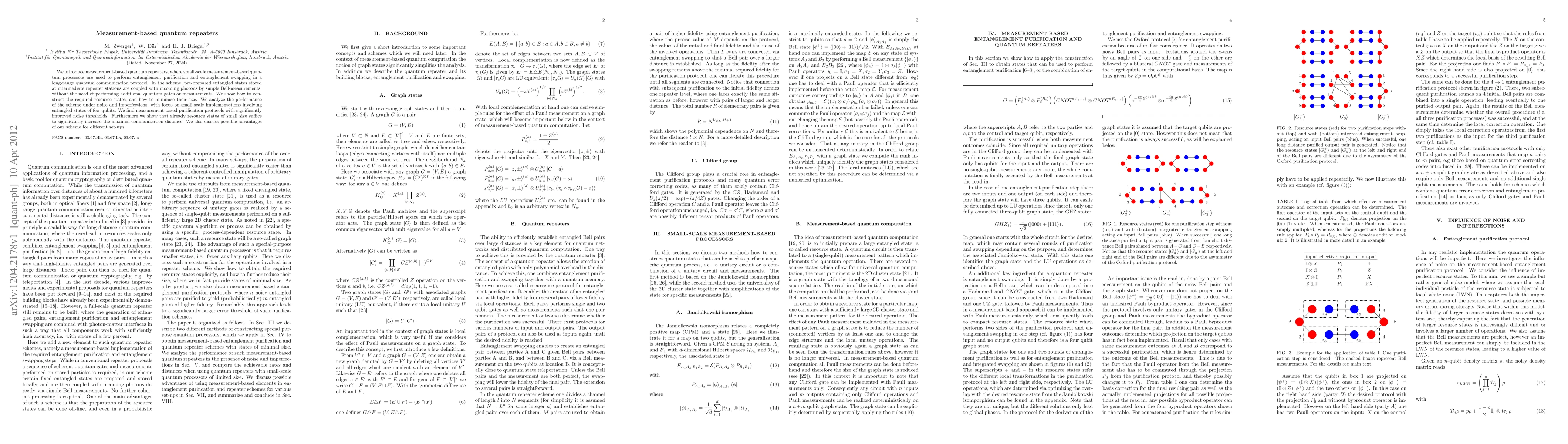 This paper introduces measurement-based quantum repeaters that utilize small-scale quantum processors for entanglement purification and swapping in long-range quantum communication. The proposed scheme achieves improved noise thresholds and increased communication distance with minimal resource states, offering advantages for small-scale implementations.