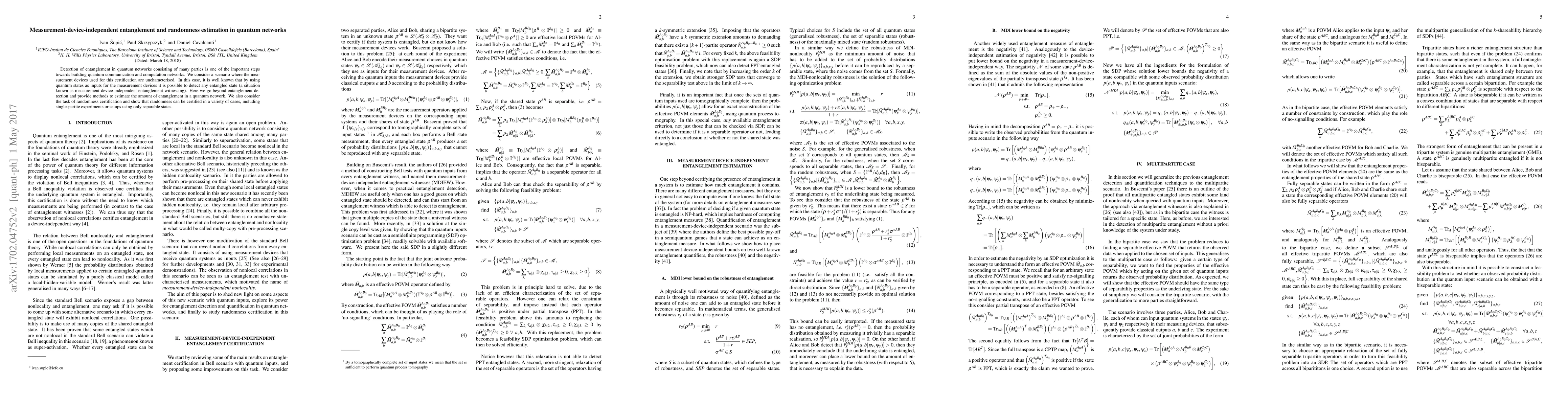 This paper presents methods for measurement device-independent entanglement witnessing and estimation in quantum networks, even when measurement devices are uncharacterised. It also introduces techniques for randomness certification, applicable in scenarios using only separable states.