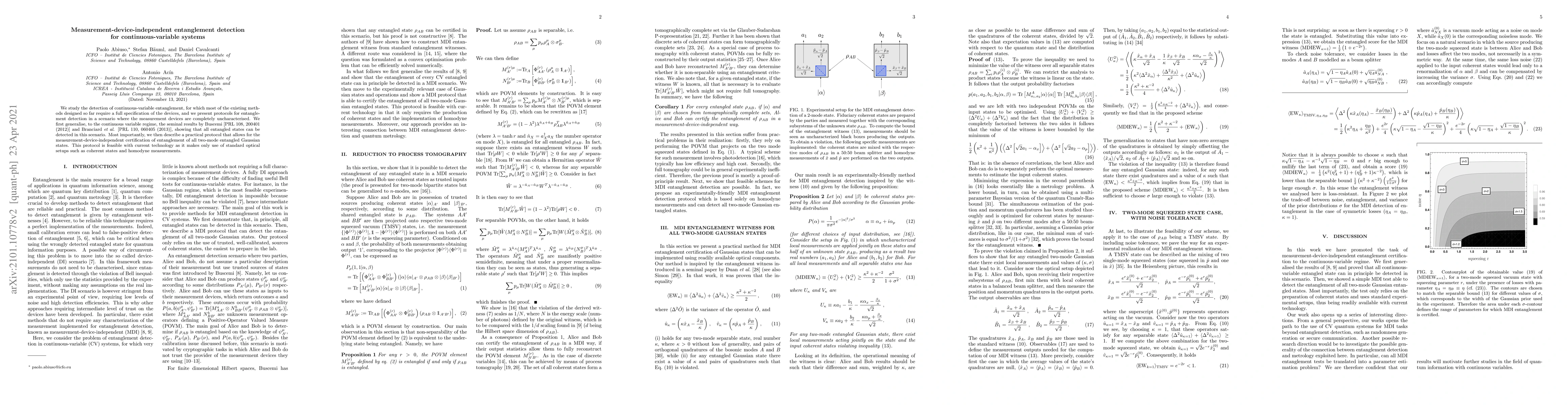 This paper presents protocols for measurement-device-independent entanglement detection in continuous-variable systems, generalizing previous results. It describes a practical protocol for certifying entanglement of two-mode Gaussian states using standard optical setups, ensuring security without detailed device characterization.