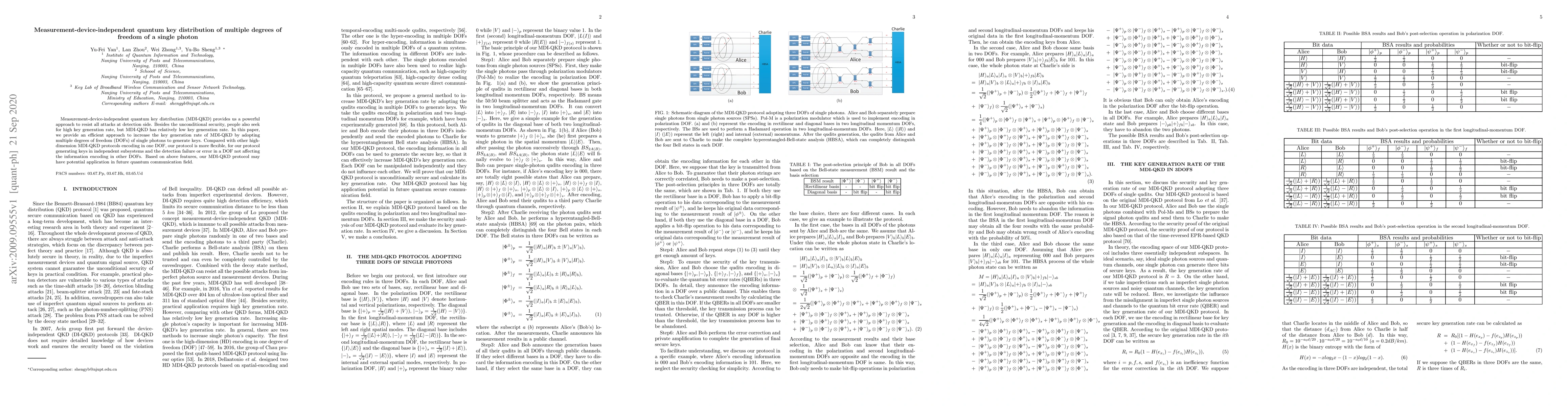 This paper presents an efficient measurement-device-independent quantum key distribution (MDI-QKD) protocol that utilizes multiple degrees of freedom (DOFs) of single photons to enhance the key generation rate. Unlike single DOF protocols, this protocol generates keys in independent subsystems, ensuring that errors in one DOF do not affect others, thus offering flexibility and potential for future quantum communication applications.