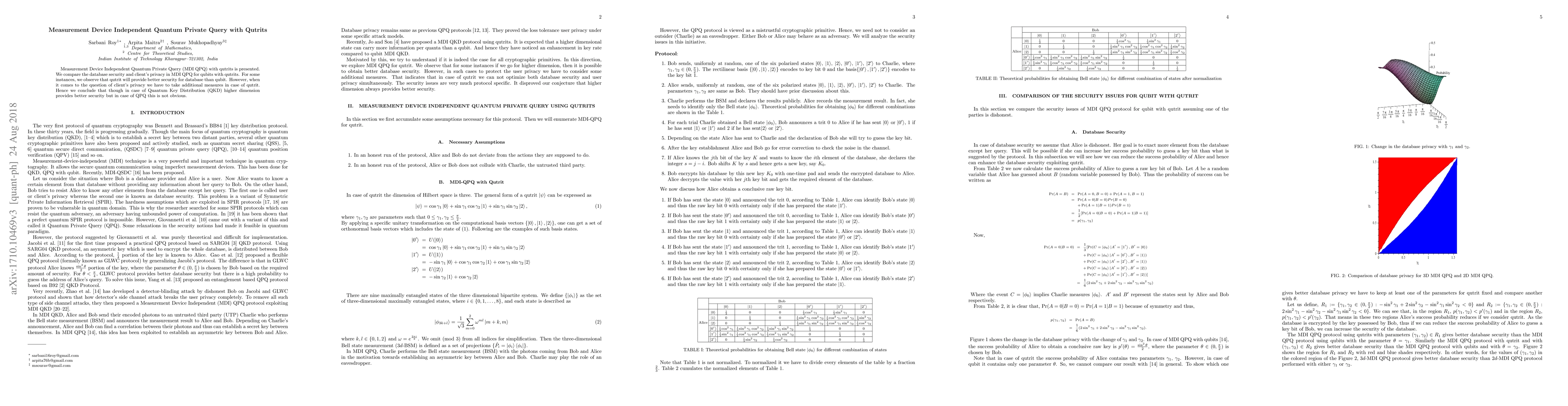 This paper investigates Measurement Device Independent Quantum Private Query (MDI QPQ) using qutrits versus qubits. It finds that while qutrits can offer better security for database protection, additional measures are needed for client privacy compared to qubits, suggesting higher dimensions do not universally enhance security in QPQ.