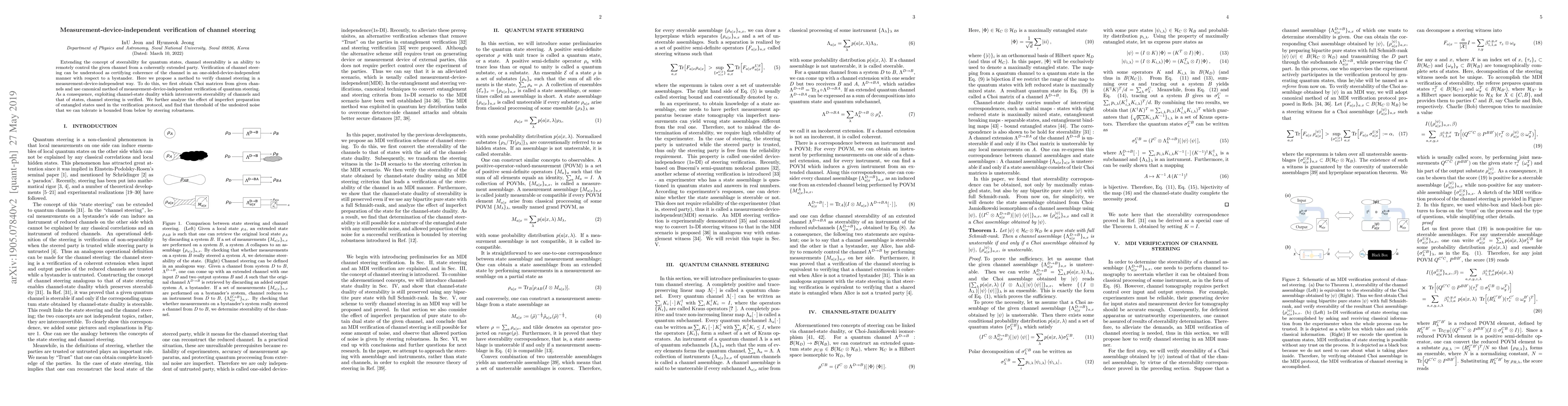 This paper proposes a measurement-device-independent method to verify channel steering, leveraging Choi matrices and the canonical method of quantum steering verification. It also examines the impact of imperfect entangled state preparation, establishing a lower bound for the tolerable noise based on steering robustness.