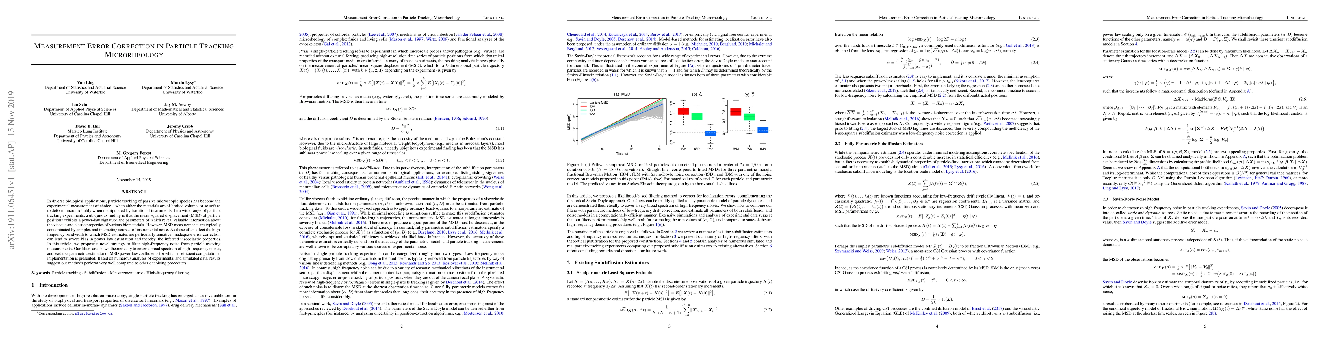 In diverse biological applications, particle tracking of passive microscopic species has become the experimental measurement of choice -- when either the materials are of limited volume, or so soft as to deform uncontrollably when manipulated by traditional instruments. In a wide range of particle tracking experiments, a ubiquitous finding is that the mean squared displacement (MSD) of particle positions exhibits a power-law signature, the parameters of which reveal valuable information about the viscous and elastic properties of various biomaterials. However, MSD measurements are typically contaminated by complex and interacting sources of instrumental noise. As these often affect the high-frequency bandwidth to which MSD estimates are particularly sensitive, inadequate error correction can lead to severe bias in power law estimation and thereby, the inferred viscoelastic properties. In this article, we propose a novel strategy to filter high-frequency noise from particle tracking measurements. Our filters are shown theoretically to cover a broad spectrum of high-frequency noises, and lead to a parametric estimator of MSD power-law coefficients for which an efficient computational implementation is presented. Based on numerous analyses of experimental and simulated data, results suggest our methods perform very well compared to other denoising procedures.