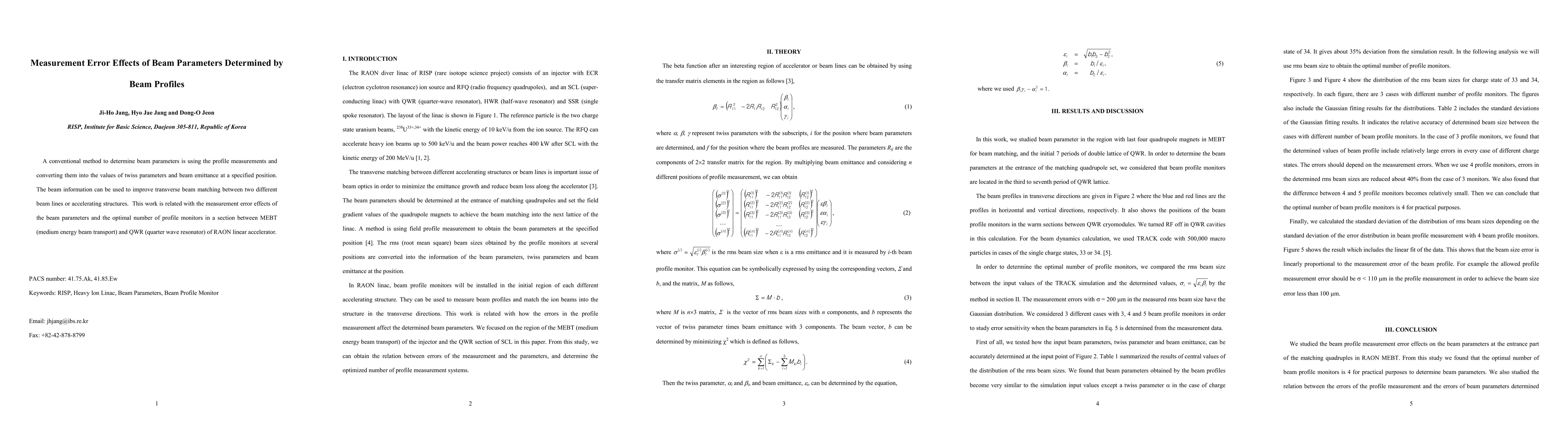 A conventional method to determine beam parameters is using the profile measurements and converting them into the values of twiss parameters and beam emittance at a specified position. The beam information can be used to improve transverse beam matching between two different beam lines or accelerating structures. This work is related with the measurement error effects of the beam parameters and the optimal number of profile monitors in a section between MEBT (medium energy beam transport) and QWR (quarter wave resonator) of RAON linear accelerator.