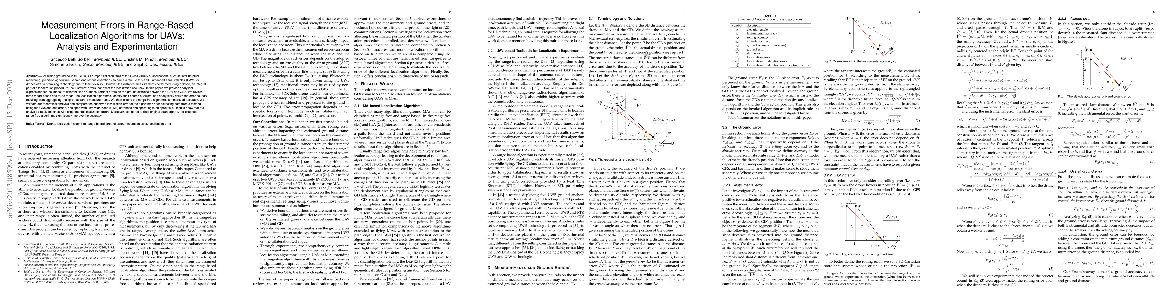 This paper analyzes measurement errors in range-based localization algorithms for drones and finds that extending certain algorithms improves accuracy, with results matching experimental data.