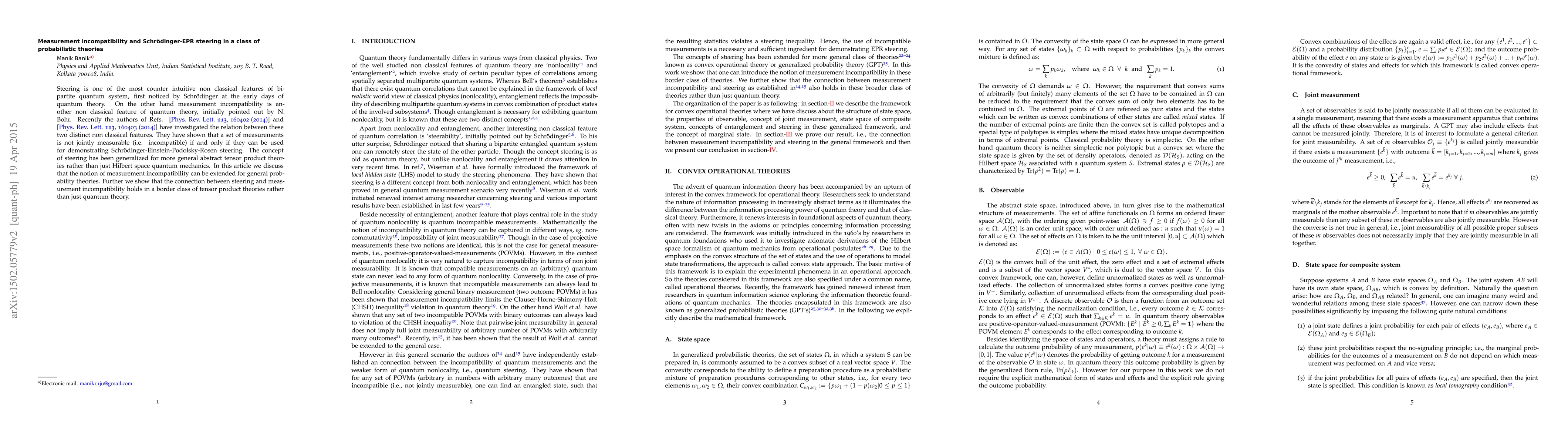 This paper explores the relationship between measurement incompatibility and Schr\"odinger-EPR steering in a broader class of probabilistic theories beyond quantum mechanics. It extends the notion of measurement incompatibility to general probability theories and demonstrates that the connection between steering and incompatibility holds in a border class of tensor product theories.