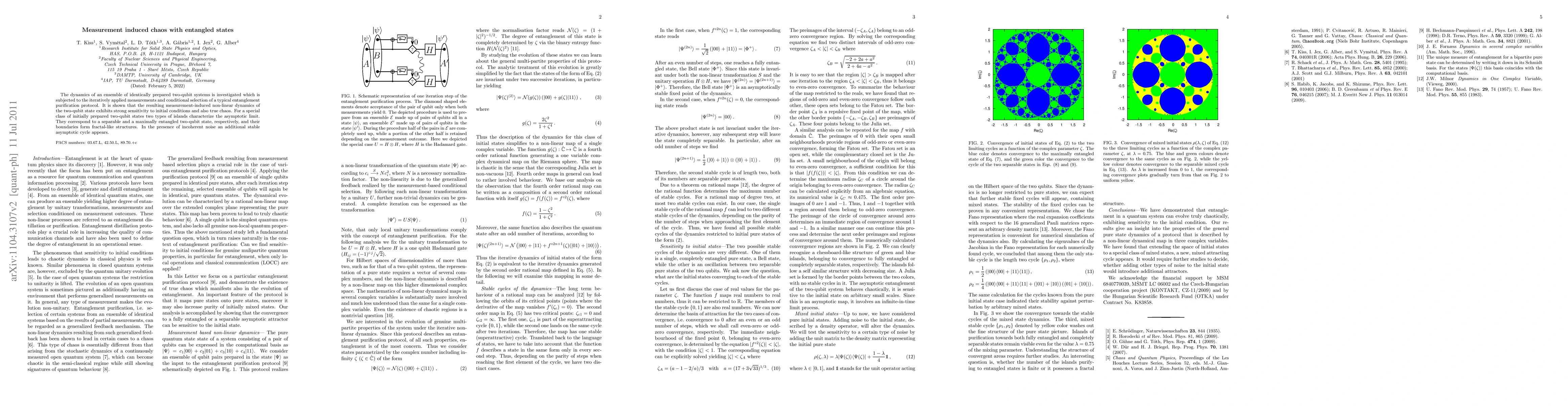 Researchers studied how measurements on entangled states of two qubits can create chaotic behavior, with initial conditions affecting the outcome. Measuring the state's sensitivity to initial conditions showed a transition from separable to maximally entangled states.