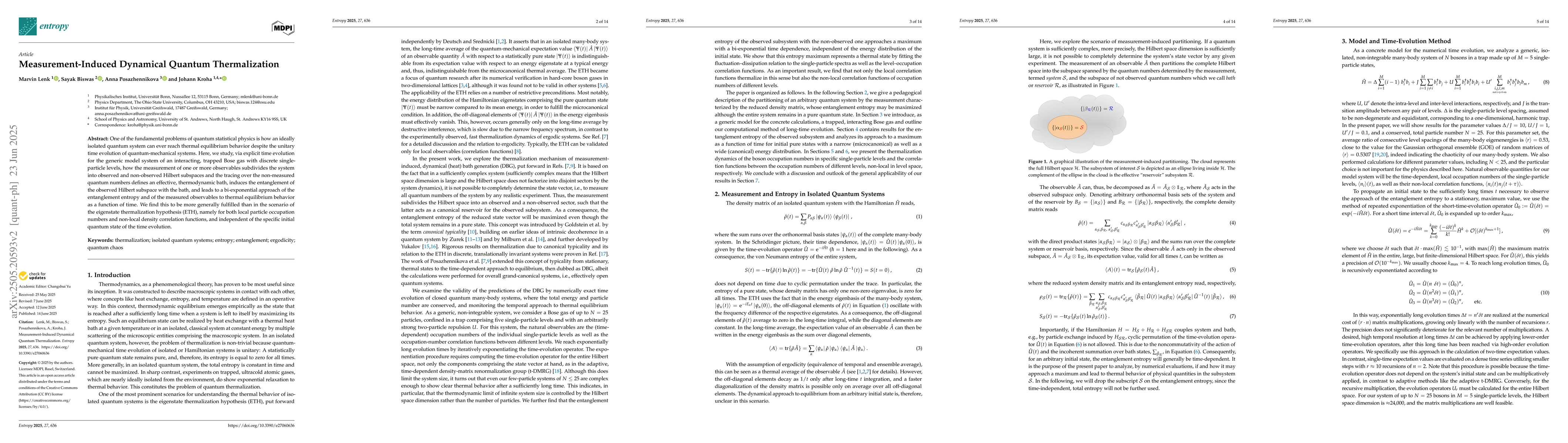 The paper presents a detailed analysis of how measurement induces effective thermalization in a quantum system through entanglement with a defined 'thermodynamic bath', leading to bi-exponential relaxation of observables.