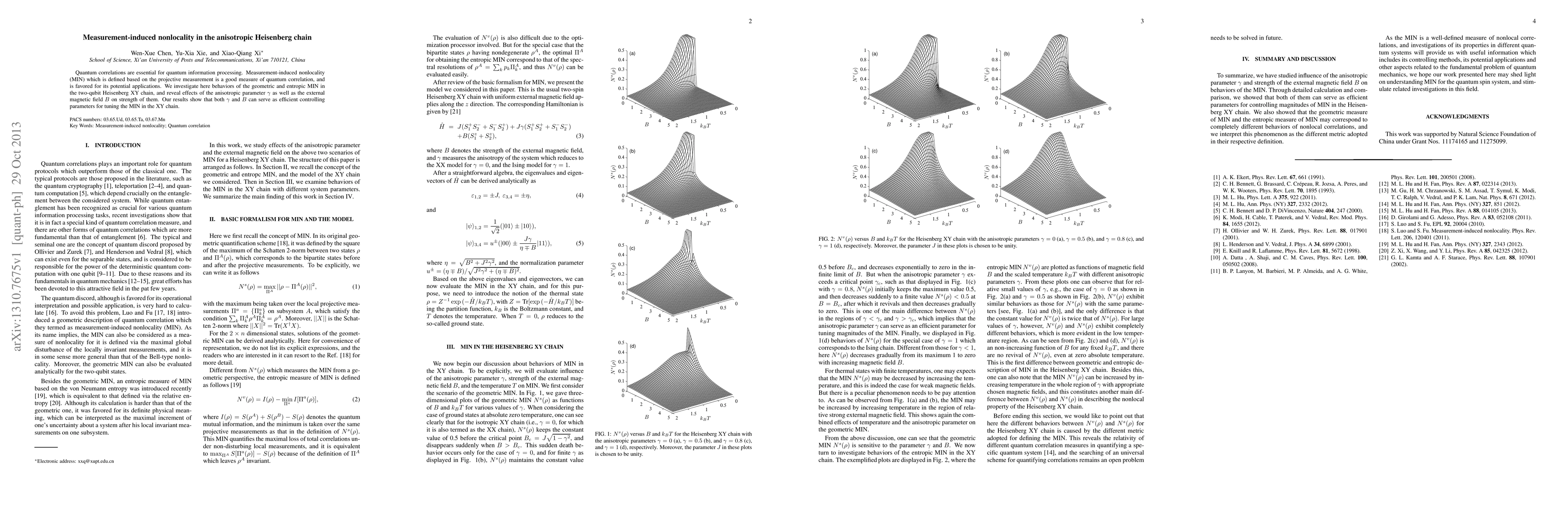 This paper investigates measurement-induced nonlocality (MIN) in the anisotropic Heisenberg XY chain, demonstrating how the anisotropic parameter $\gamma$ and external magnetic field $B$ can effectively tune the strength of geometric and entropic MIN, highlighting their potential for quantum information processing.