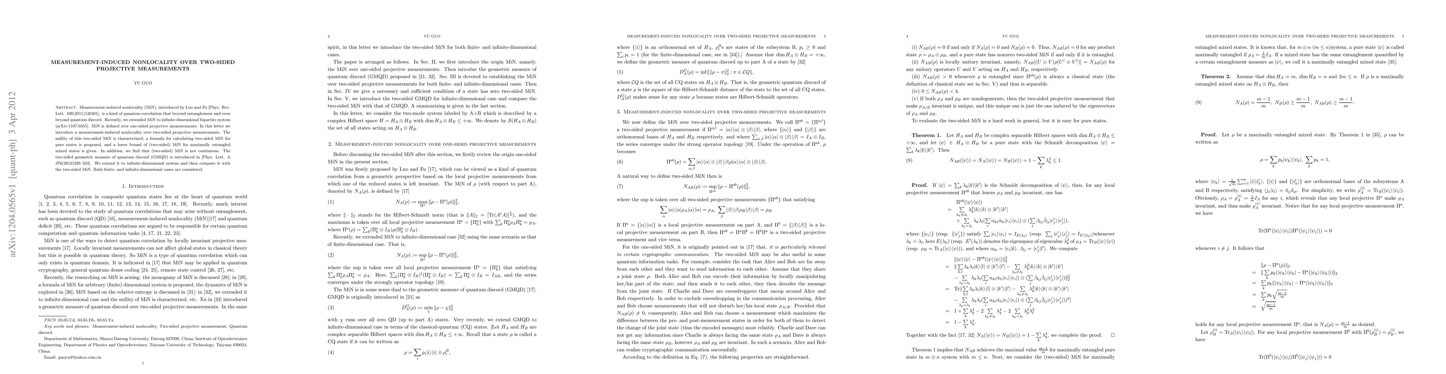This paper introduces measurement-induced nonlocality (MiN) over two-sided projective measurements, extending MiN beyond one-sided measurements. It proposes a formula for calculating two-sided MiN for pure states and finds that it is not continuous, contrasting it with the two-sided geometric measure of quantum discord (GMQD) for both finite- and infinite-dimensional systems.