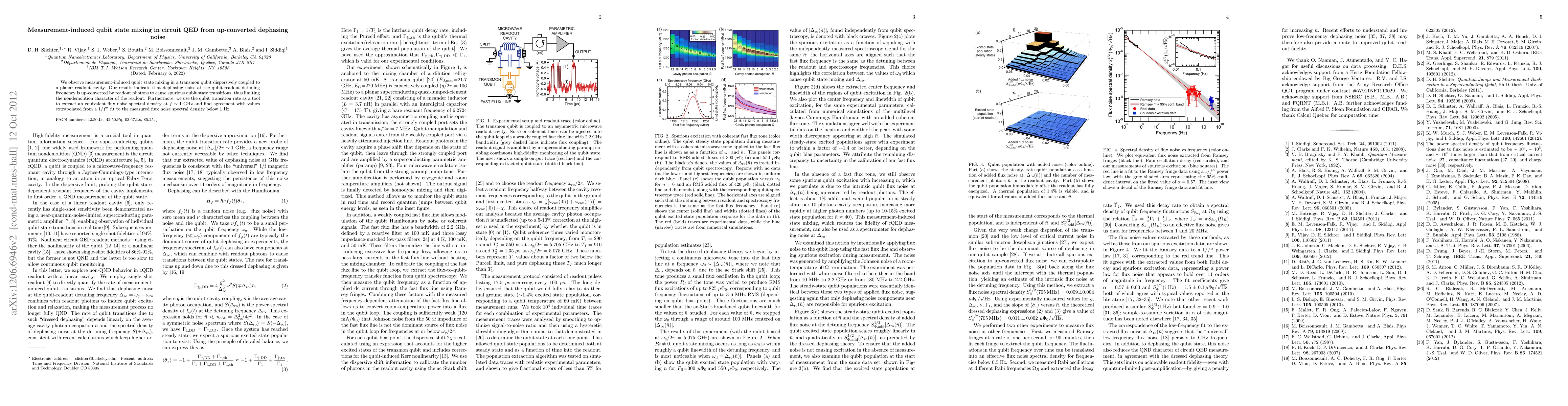 This paper investigates measurement-induced qubit state mixing in circuit quantum electrodynamics, revealing that dephasing noise is up-converted by readout photons, causing spurious qubit transitions and limiting the nondemolition readout. The study also correlates the qubit transition rate with flux noise spectral density at ~1 GHz.
