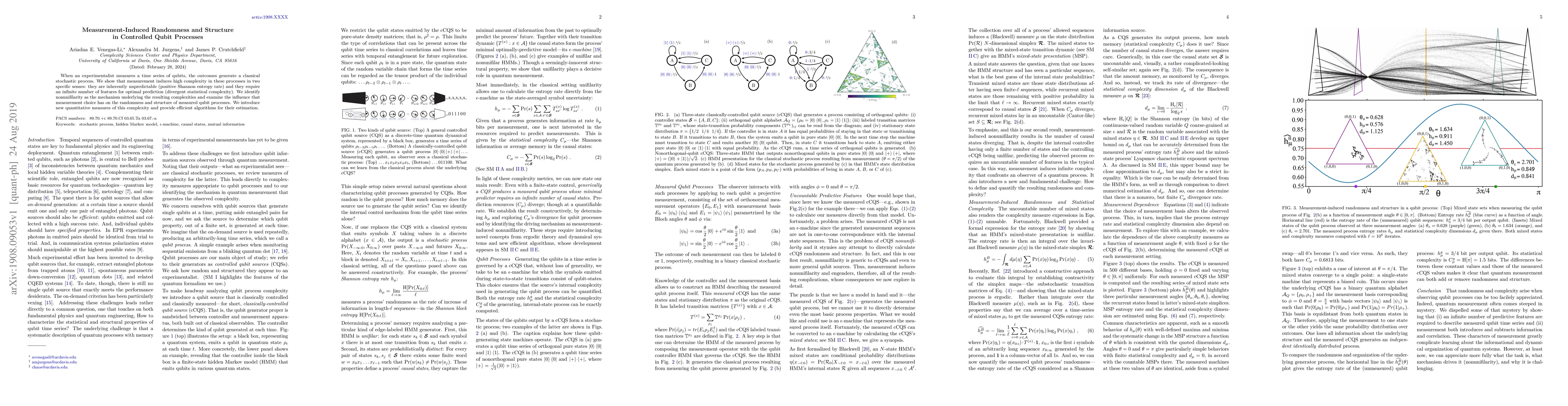 When an experimentalist measures a time series of qubits, the outcomes generate a classical stochastic process. We show that measurement induces high complexity in these processes in two specific senses: they are inherently unpredictable (positive Shannon entropy rate) and they require an infinite number of features for optimal prediction (divergent statistical complexity). We identify nonunifilarity as the mechanism underlying the resulting complexities and examine the influence that measurement choice has on the randomness and structure of measured qubit processes. We introduce new quantitative measures of this complexity and provide efficient algorithms for their estimation.