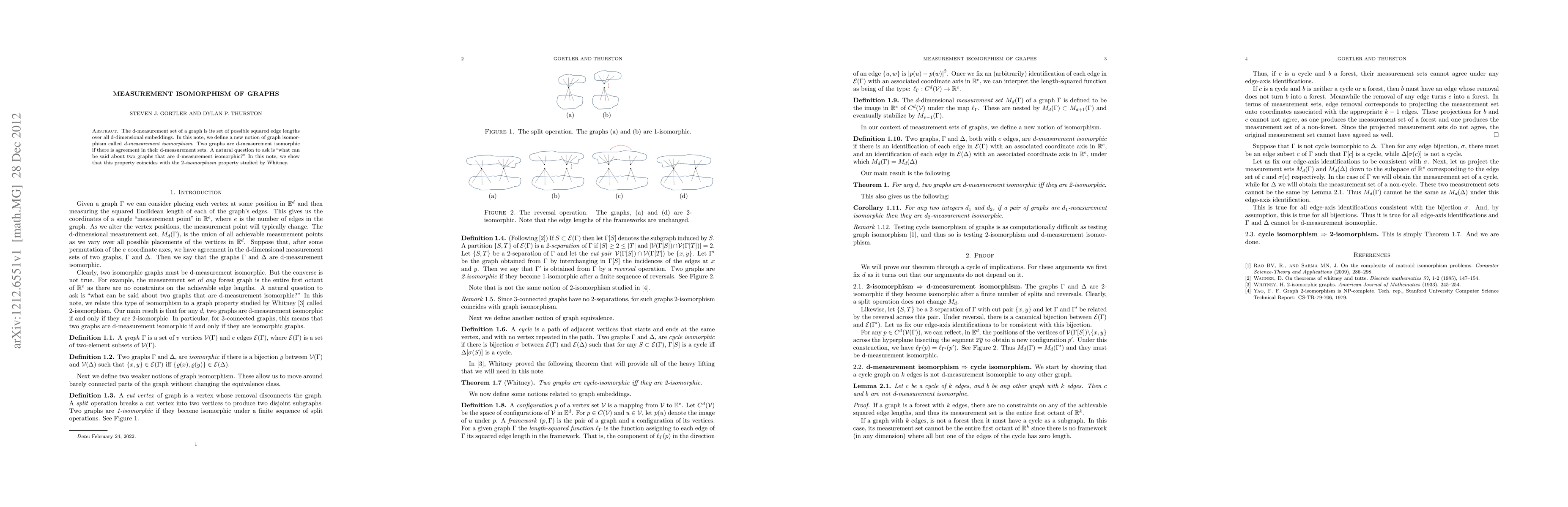 The d-measurement set of a graph is its set of possible squared edge lengths over all d-dimensional embeddings. In this note, we define a new notion of graph isomorphism called d-measurement isomorphism. Two graphs are d-measurement isomorphic if there is agreement in their d-measurement sets. A natural question to ask is "what can be said about two graphs that are d-measurement isomorphic?" In this note, we show that this property coincides with the 2-isomorphism property studied by Whitney.