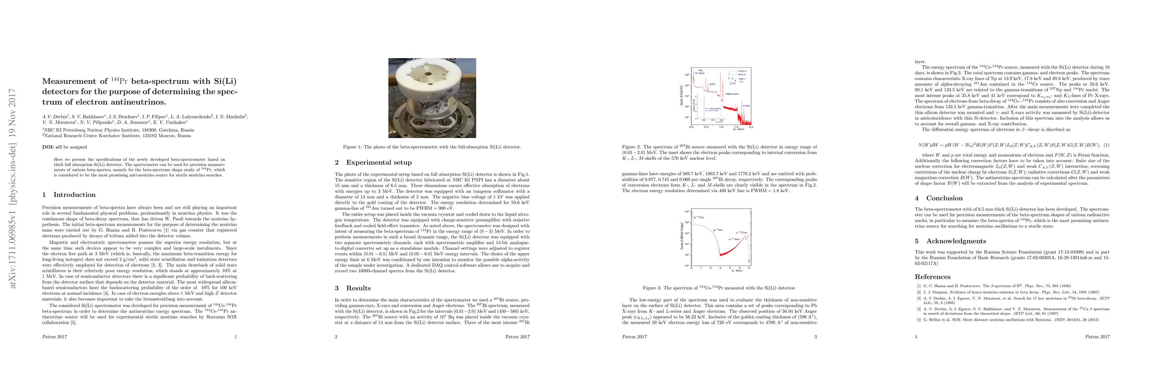 This paper details a newly developed beta-spectrometer using thick Si(Li) detectors for precise measurement of the $^{144}$Pr beta-spectrum, aiming to determine the spectrum of electron antineutrinos and aid in sterile neutrino searches.