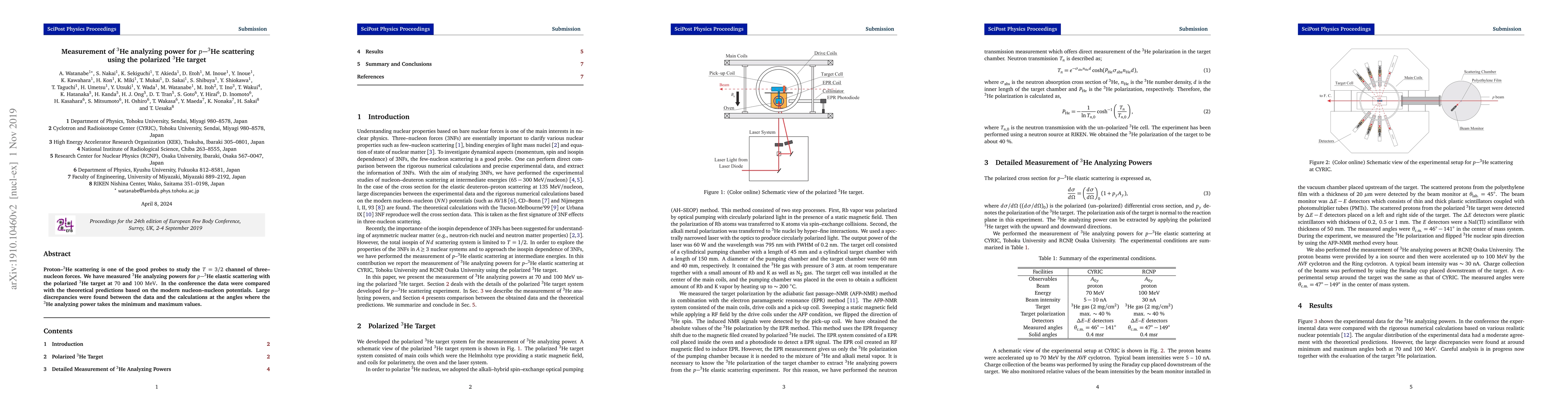 Proton-3He scattering is one of the good probes to study the T=3/2 channel of three--nucleon forces. We have measured 3He analyzing powers for p-3He elastic scattering with the polarized 3He target at 70 and 100 MeV. The data are compared with the theoretical predictions based on the modern nucleon--nucleon potentials. Large discrepancies are found between the data and the calculations at the angles where the 3He analyzing power takes the minimum and maximum values, which are not explained by taking into account Delta-isobar degrees of freedom.