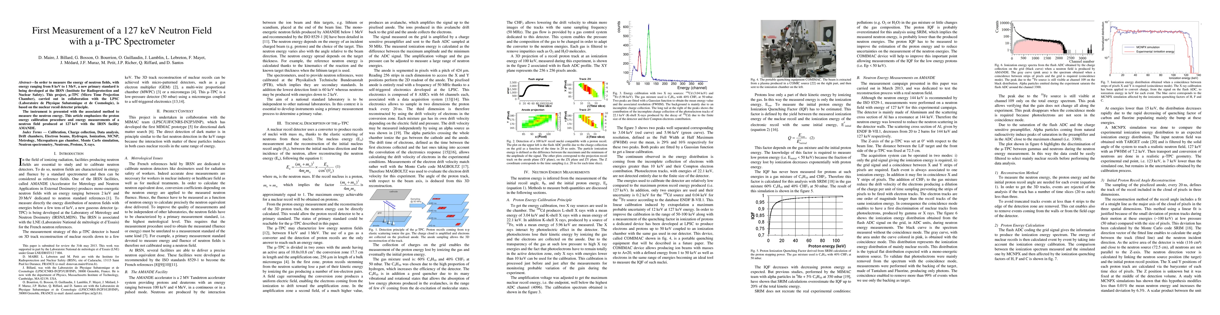 This paper details a new micro-TPC spectrometer developed at IRSN for measuring neutron energies from 8 keV to 1 MeV, focusing on the proton energy calibration method and the successful measurement of a 127 keV neutron field using the AMANDE facility.