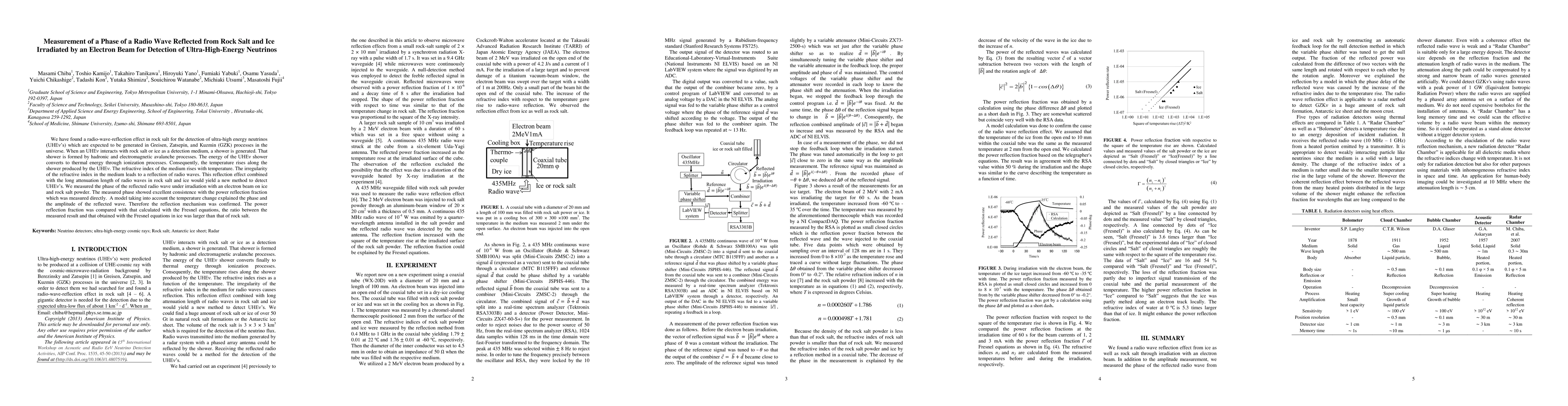 We have found a radio-wave-reflection effect in rock salt for the detection of ultra-high energy neutrinos which are expected to be generated in Greisen, Zatsepin, and Kuzmin (GZK) processes in the universe. When an UHE neutrino interacts with rock salt or ice as a detection medium, a shower is generated. That shower is formed by hadronic and electromagnetic avalanche processes. The energy of the UHE neutrino shower converts to thermal energy through ionization processes. Consequently, the temperature rises along the shower produced by the UHE neutrino. The refractive index of the medium rises with temperature. The irregularity of the refractive index in the medium leads to a reflection of radio waves. This reflection effect combined with the long attenuation length of radio waves in rock salt and ice would yield a new method to detect UHE neutrinos. We measured the phase of the reflected radio wave under irradiation with an electron beam on ice and rock salt powder. The measured phase showed excellent consistence with the power reflection fraction which was measured directly. A model taking into account the temperature change explained the phase and the amplitude of the reflected wave. Therefore the reflection mechanism was confirmed. The power reflection fraction was compared with that calculated with the Fresnel equations, the ratio between the measured result and that obtained with the Fresnel equations in ice was larger than that of rock salt.
