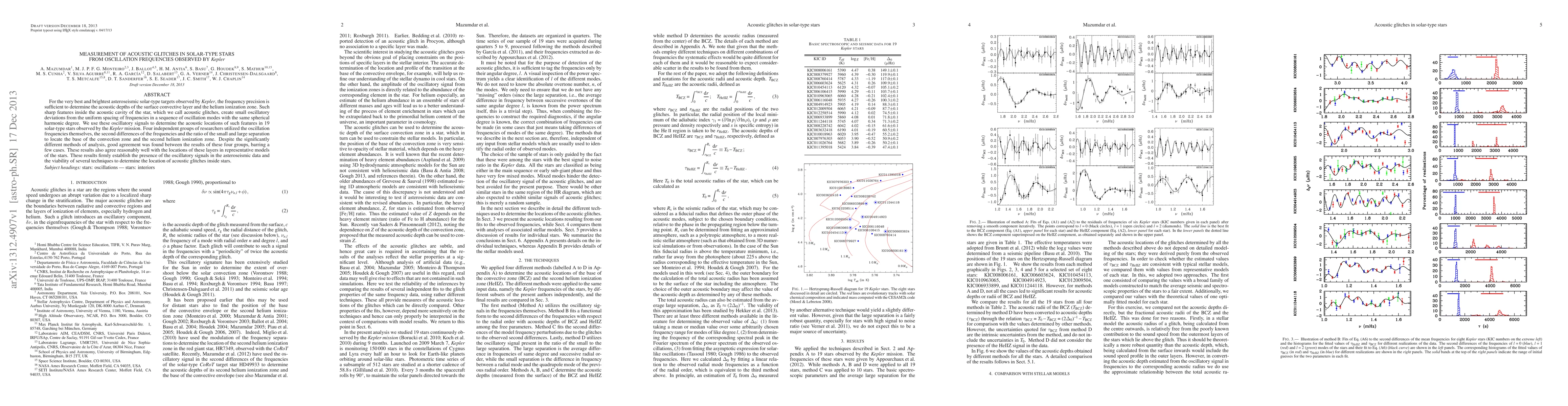 This paper measures acoustic glitches in solar-type stars using precise oscillation frequencies from Kepler data, identifying sharp features that cause small deviations in frequency spacing. Results from four independent groups confirm the presence of these glitches and validate various analytical techniques for their detection.