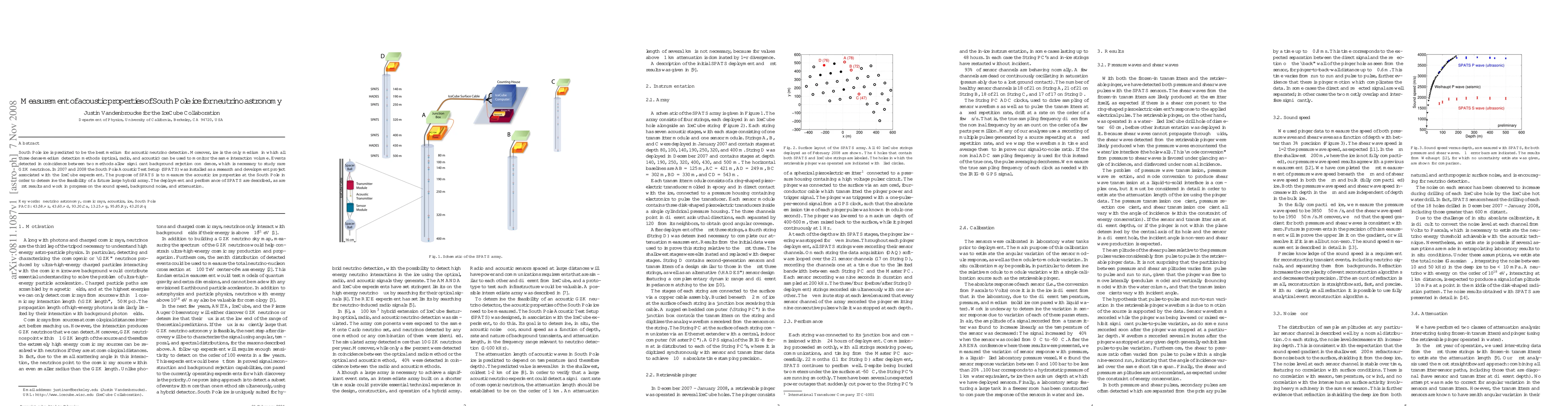 The South Pole Acoustic Test Setup (SPATS) was deployed to measure acoustic properties of South Pole ice for neutrino detection, aiming to determine feasibility for a large hybrid array. Initial results on sound speed, background noise, and attenuation are presented, highlighting the ice's potential for rare GZK neutrino studies.