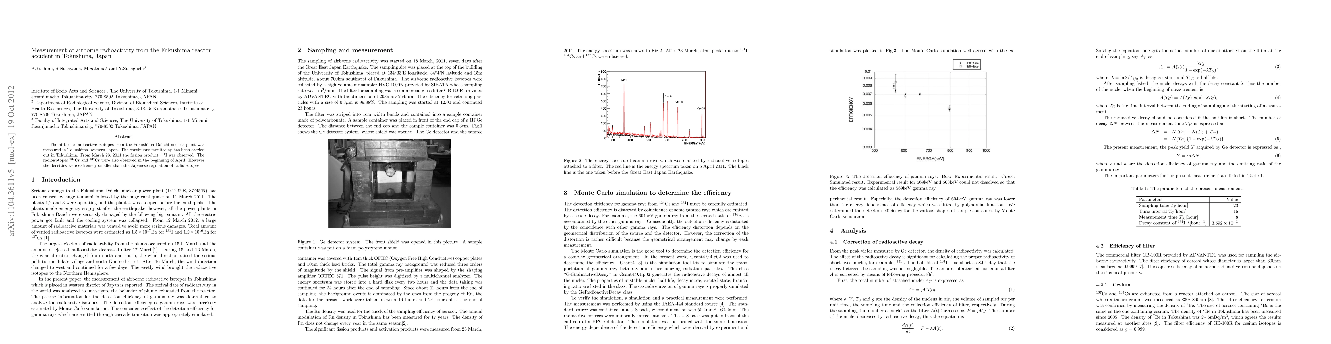 Summary: Continuous monitoring in Tokushima, Japan, following the Fukushima reactor accident detected airborne fission products $^{131}$I from March 23, 2011, and $^{134}$Cs and $^{137}$Cs in early April, though levels remained significantly below Japanese regulatory limits.