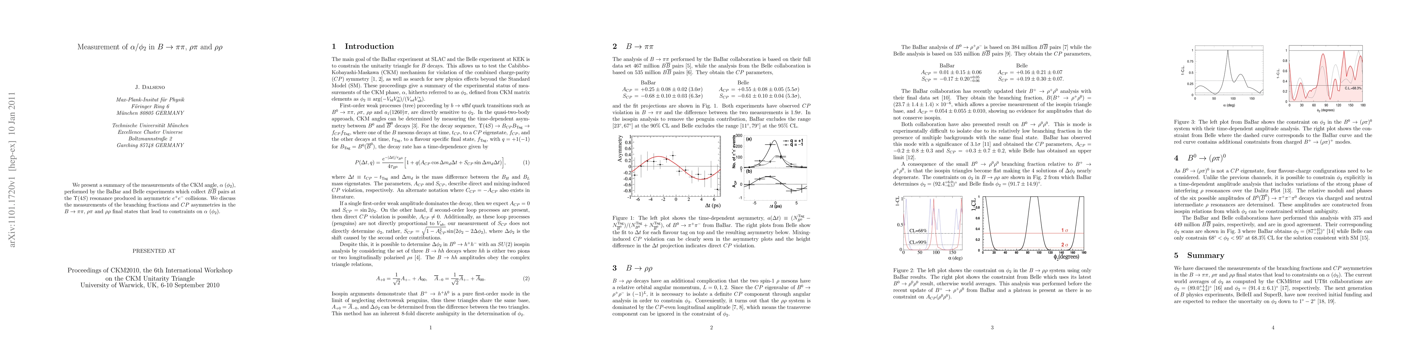 We present a summary of the measurements of the CKM angle, alpha (phi2), performed by the BaBar and Belle experiments which collect BBbar pairs at the Y(4S) resonance produced in asymmetric e+ e- collisions. We discuss the measurements of the branching fractions and CP asymmetries in the B --> pi pi, rho pi and rho rho final states that lead to constraints on alpha (phi2).