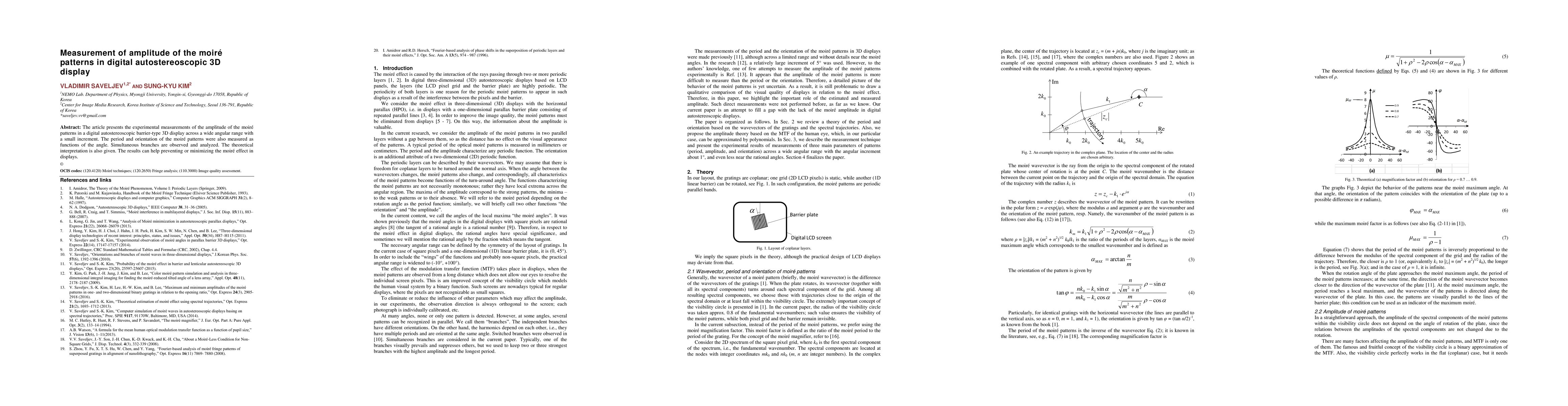 The article presents the experimental measurements of the amplitude of the moir\'e patterns in a digital autostereoscopic barrier-type 3D display across a wide angular range with a small increment. The period and orientation of the moir\'e patterns were also measured as functions of the angle. Simultaneous branches are observed and analyzed. The theoretical interpretation is also given. The results can help preventing or minimizing the moir\'e effect in displays.