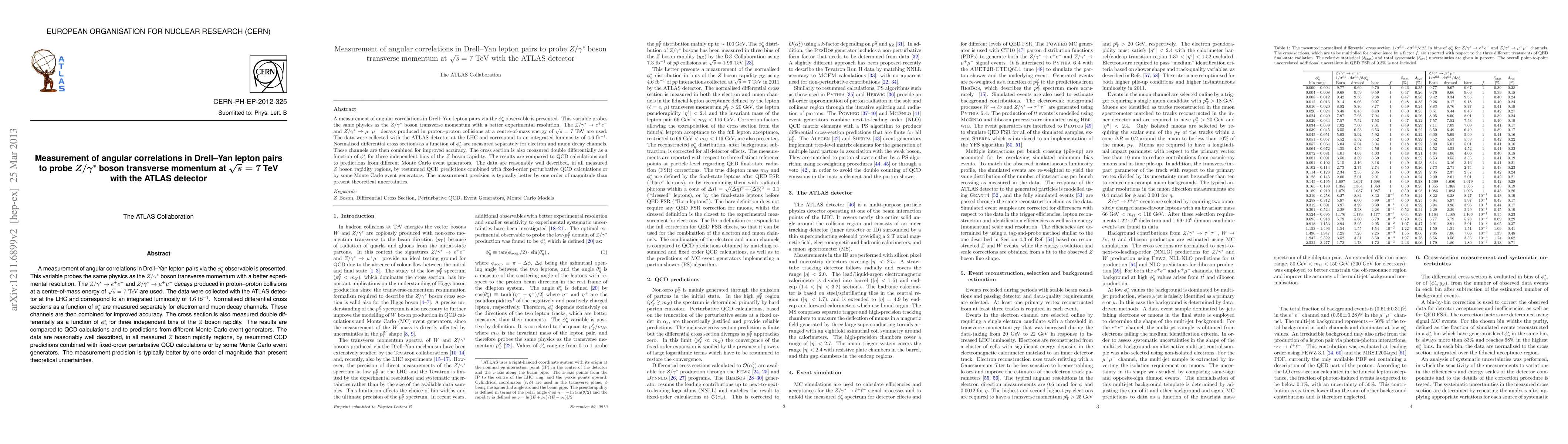 This paper measures angular correlations in Drell-Yan lepton pairs using the phistar observable to probe Z/gamma* boson transverse momentum at sqrt(s) = 7 TeV with the ATLAS detector. The results show good agreement with resummed QCD predictions and some Monte Carlo event generators, providing a precision improvement over current theoretical uncertainties.
