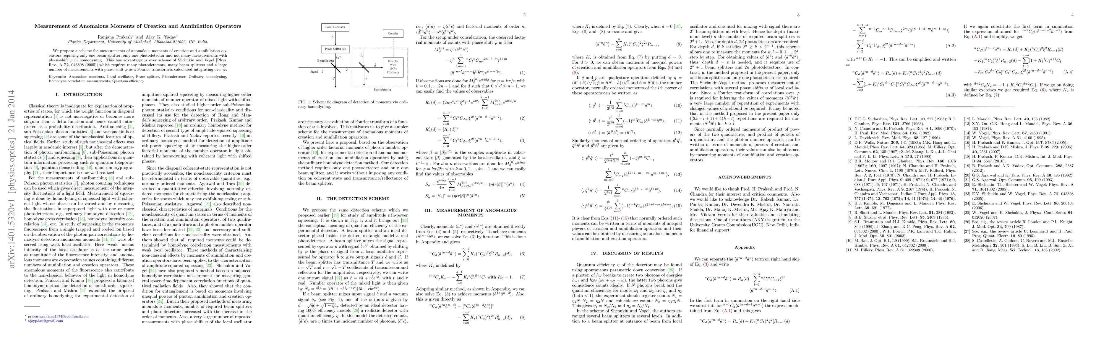 We propose a scheme for measurements of anomalous moments of creation and annihilation operators requiring only one beam splitter, only one photodetector and not many measurements with phase-shift $\varphi$ in homodyning. This has advantageous over scheme of Shchukin and Vogel [Phys. Rev. A 72, 043808 (2005)] which requires many photodetectors, many beam splitters and a large number of measurements with phase-shift $\varphi$ as a Fourier transform is calculated integrating over $\varphi$.
