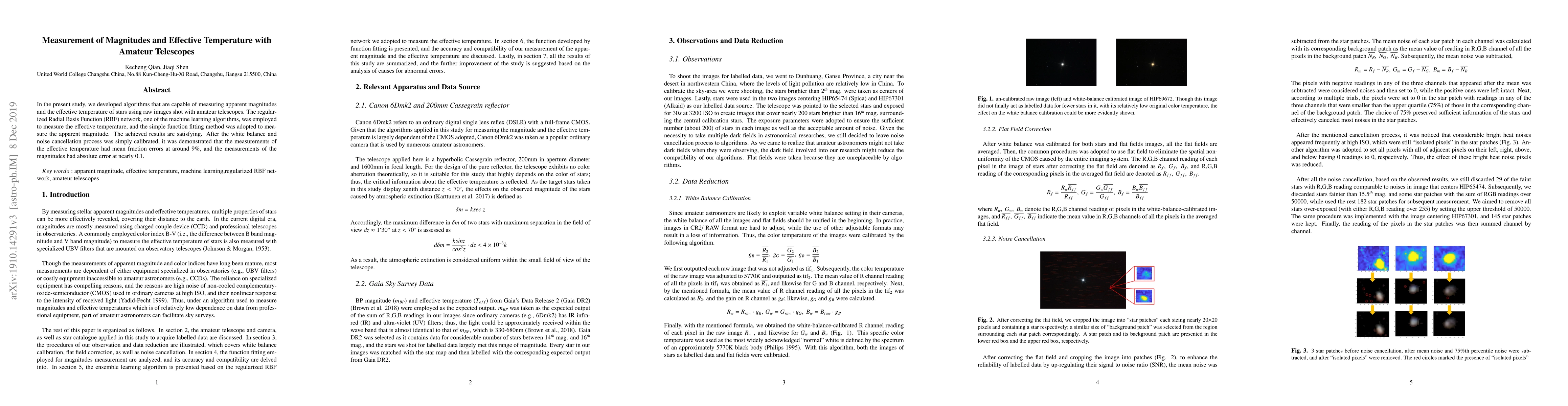Researchers developed algorithms to measure star temperatures and brightness with amateur telescopes, achieving accurate results of 9% for temperature and 0.1 magnitude units.