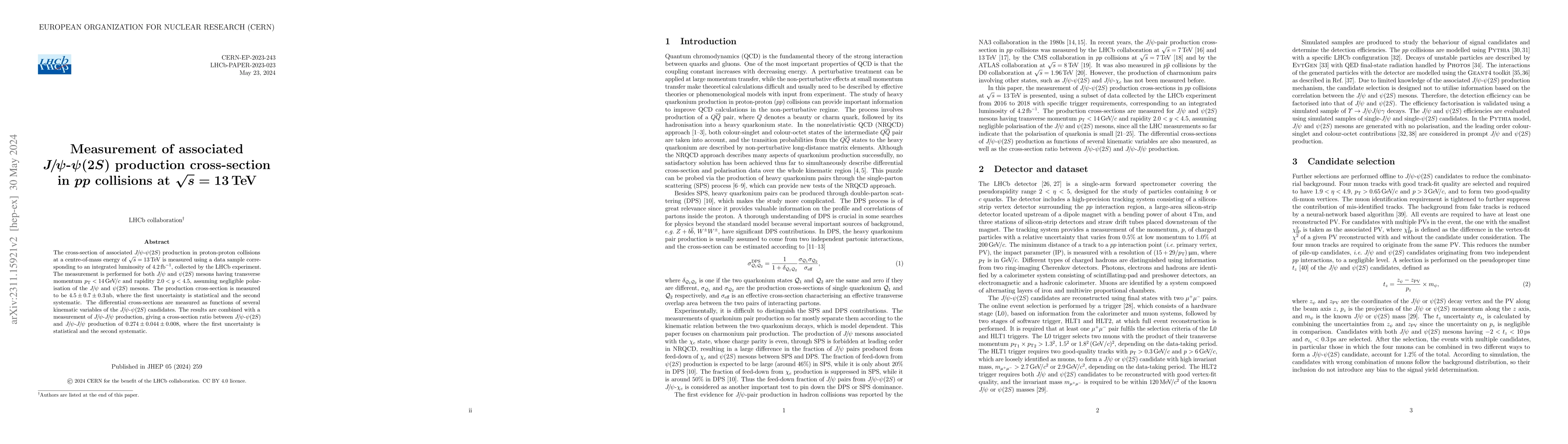 The LHCb experiment measured the cross-section for associated $J/\psi$-$\psi(2S)$ production in $pp$ collisions at $\sqrt{s}=13$ TeV, finding it to be $4.5\pm0.7\pm0.3$ nb. The ratio of this production cross-section to $J/\psi$-$J/\psi$ production was determined to be $0.274\pm0.044\pm0.008$.
