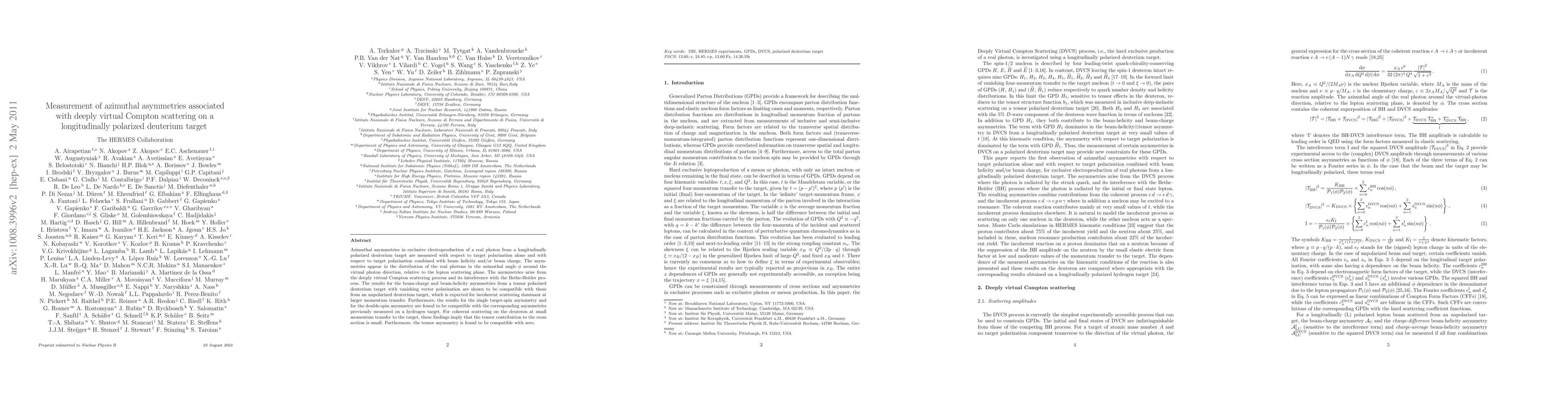 This paper measures azimuthal asymmetries in deeply virtual Compton scattering from a longitudinally polarized deuterium target, revealing that tensor contributions to the cross section are small and the tensor asymmetry is consistent with zero. The findings align with expectations for incoherent scattering at larger momentum transfers.