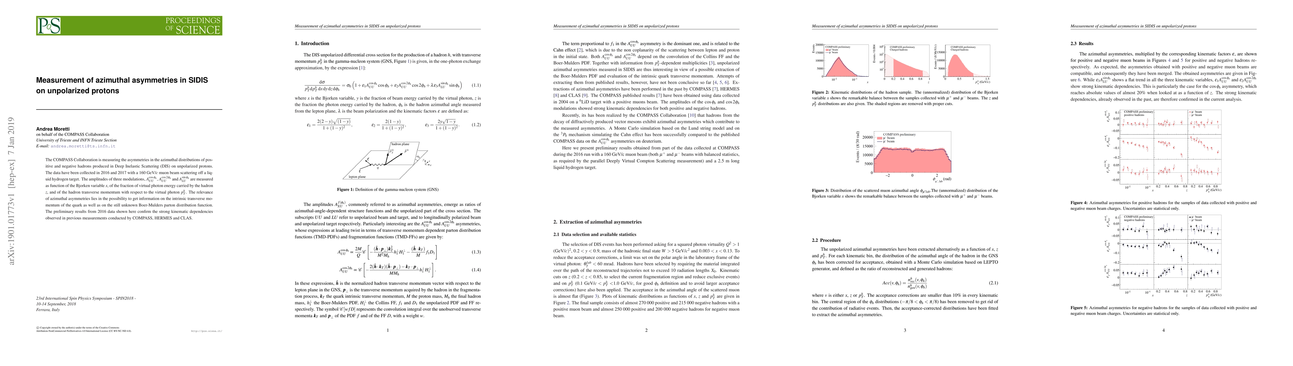 The COMPASS Collaboration measures azimuthal asymmetries in SIDIS on unpolarized protons, providing insights into quark intrinsic transverse momentum and the Boer-Mulders parton distribution function.