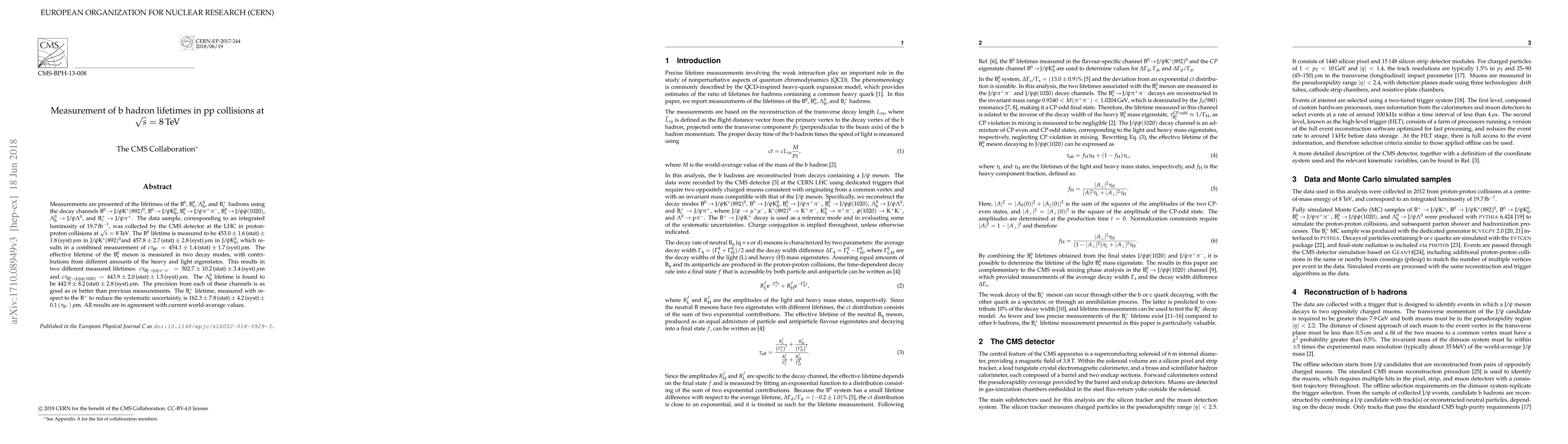 This paper reports precise measurements of the lifetimes of various b hadrons (B$^0$, B$^0_\mathrm{s}$, $\Lambda^0_\mathrm{b}$, and B$_\mathrm{c}^+$) using data from proton-proton collisions at $\sqrt{s}=$ 8 TeV collected by the CMS detector at the LHC. The results show good agreement with current world-average values and improved precision over previous measurements.
